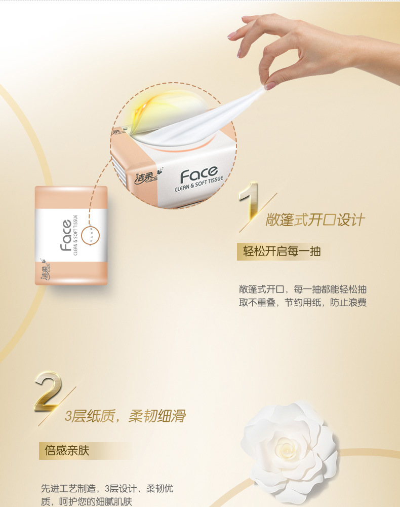 潔柔百花香紙巾抽紙香味120抽三層整箱18包m碼大包可濕水面巾紙