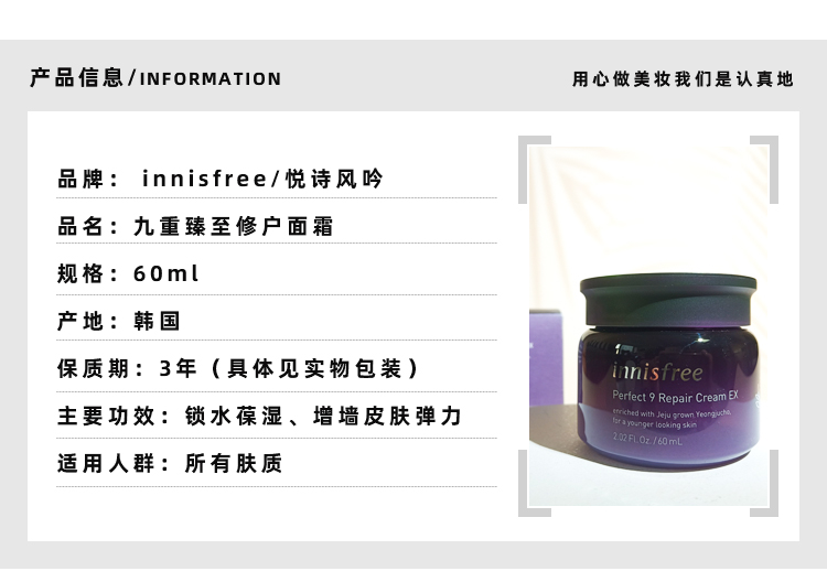 韓國innisfree悅詩風吟九重臻致修復面霜保濕補水緊致滋潤修護