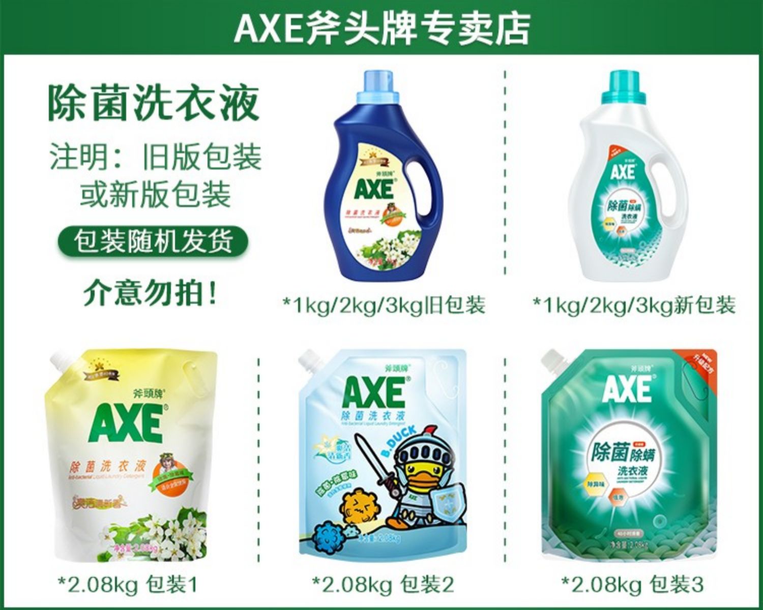AXE/斧頭牌洗衣液1KG裝香味持久整箱批護理家用實惠裝促銷無磷