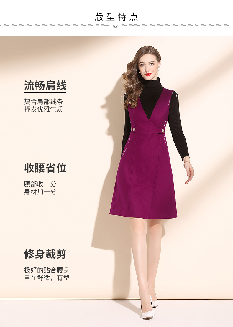 紫色毛呢2022新款秋冬氣質冬連衣裙