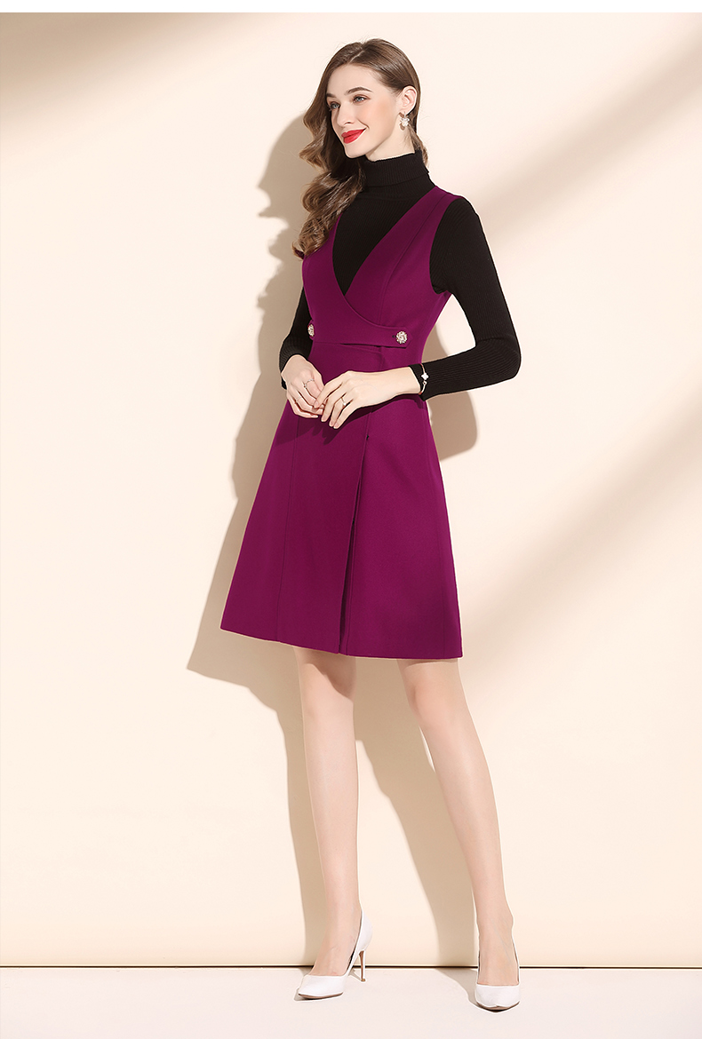 冬裝2023年新款女紫色無袖連衣裙中長款毛呢背心裙女秋冬打底裙