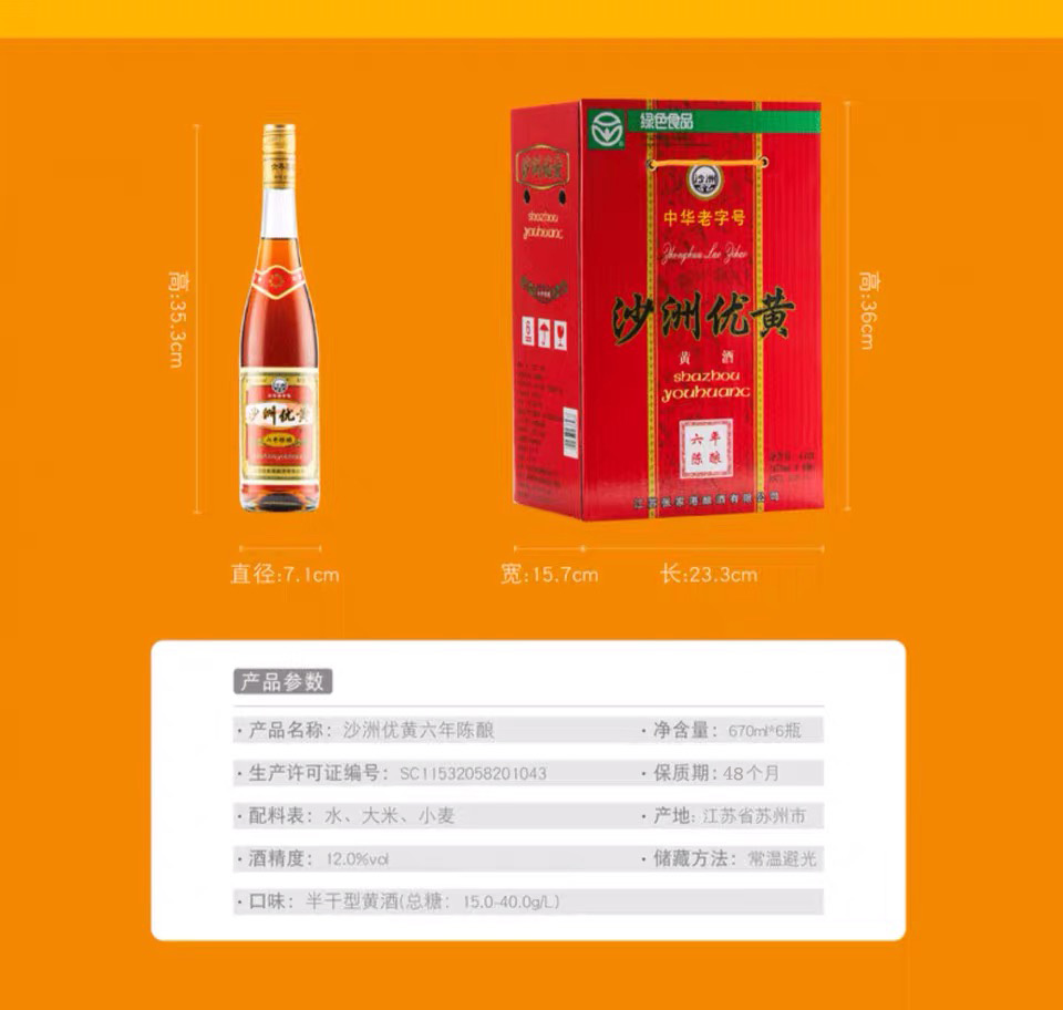 蘇州特產沙洲優黃普優六年陳釀黃酒