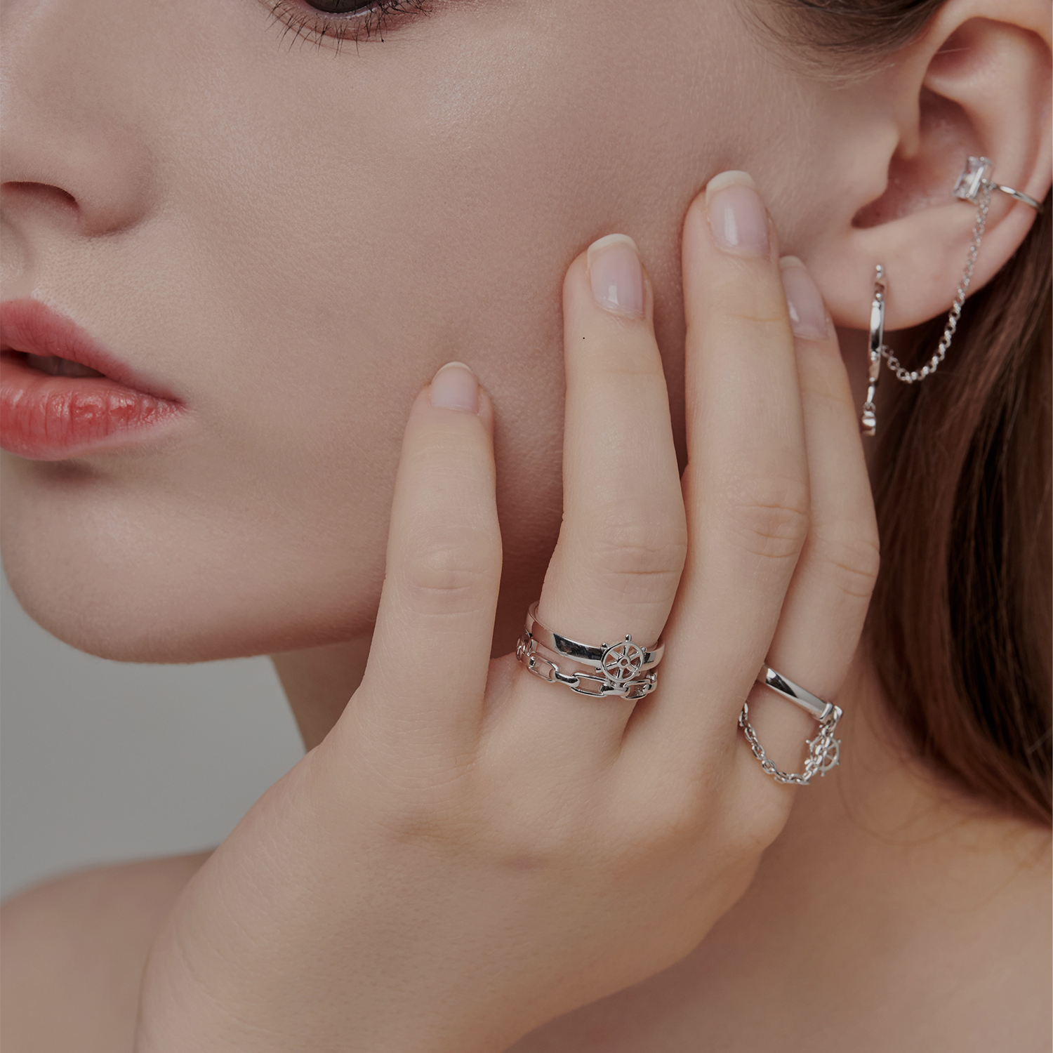 DAN DREAM 舵盤925純銀雙層鏈條戒指女時尚個性食指指環小眾精致