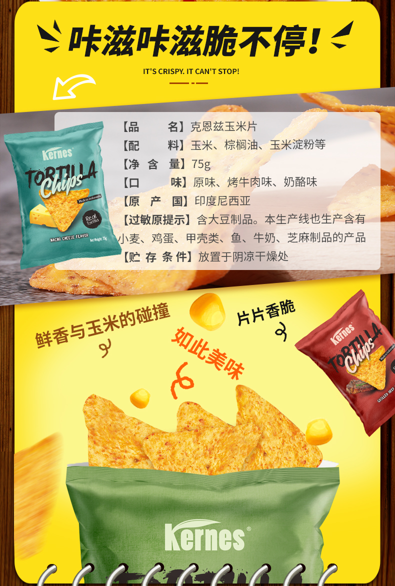 印尼進口克恩茲玉米片原味芝士味網紅休閑零食膨化食品即食早餐