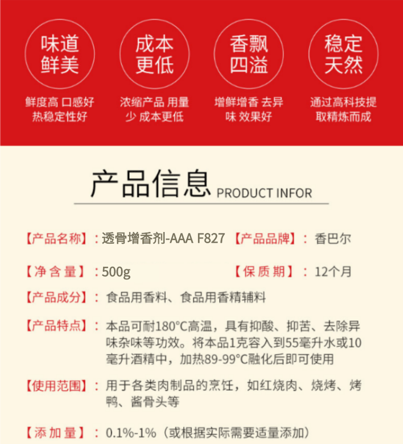 香巴爾透骨增香劑aaaF827鹵肉鹵味增香粉烤鴨烤雞腌制去腥料500g