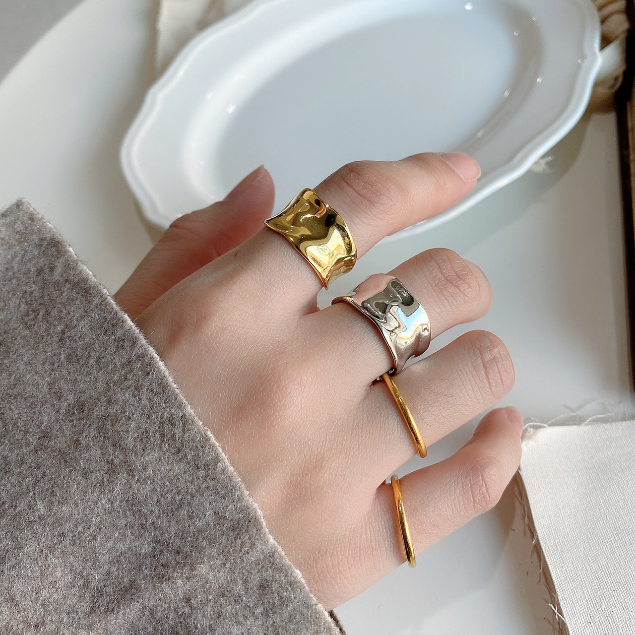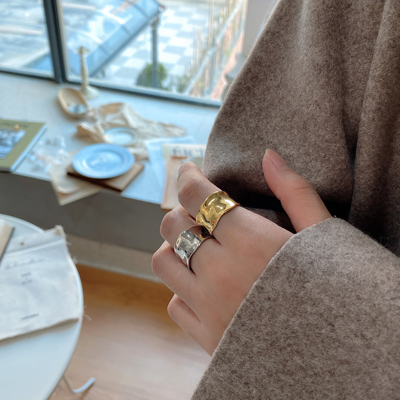 日韓S925純銀幾何極簡戒指女設計感ins網紅寬面波浪不規則戒指