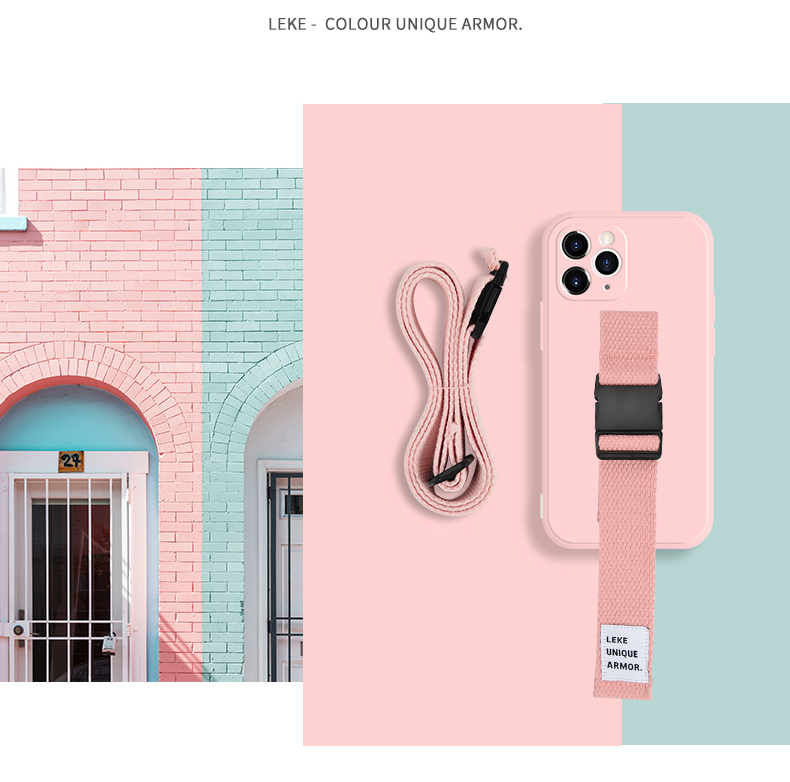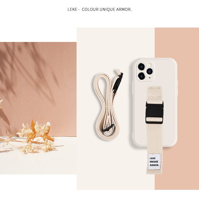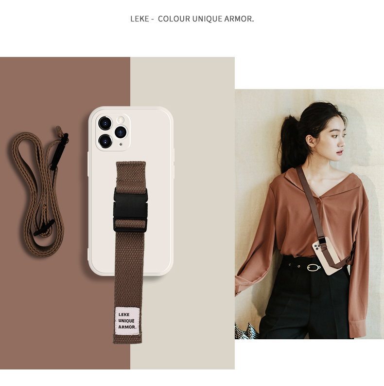 顯白新色iphone13手機殼液態硅膠ins風純色尼龍潮掛繩蘋果12pro保護套腕帶斜挎二合一背包式12promax情侶支架