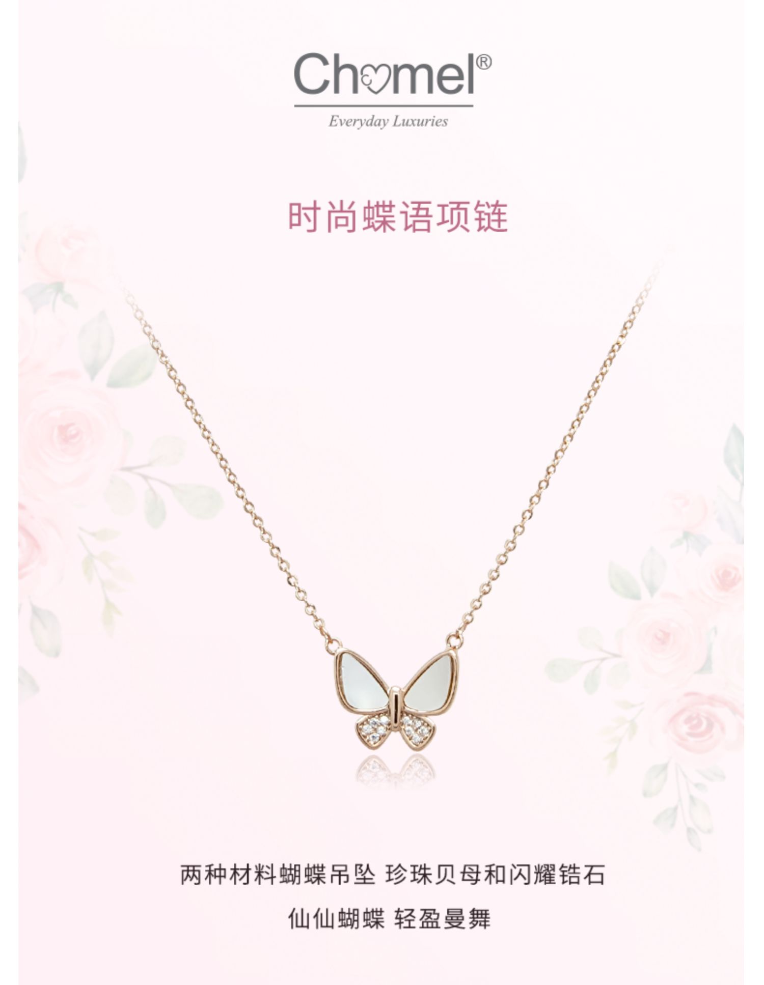 Chomel官方蝴蝶珍珠貝母項鏈女輕奢小眾生日禮物女生設計感3221