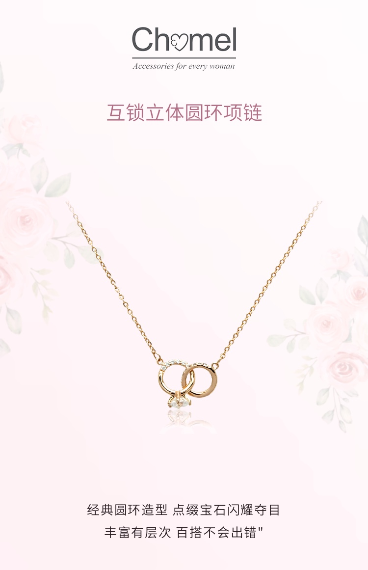Chomel新加坡三環愛戀項鏈女輕奢小眾鎖骨鏈吊墜2023新款爆款3429
