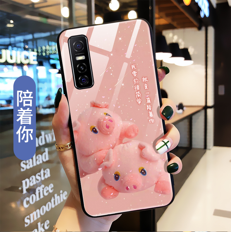 適用vivos7e活力版手機殼玻璃步步高vivo保護S7硅膠套s7t全包邊V2031A防摔外V2020A可愛豬viv0軟殼vivi男EA女