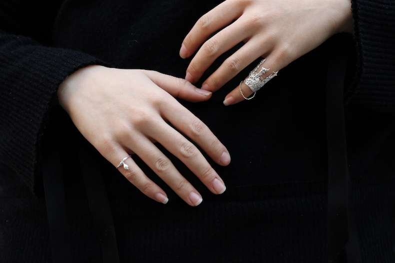 moi iom akoya珍珠手工關節尾戒戒指做舊925純銀肌理指環復古中性