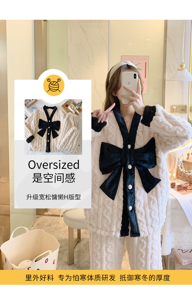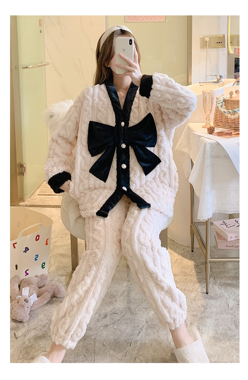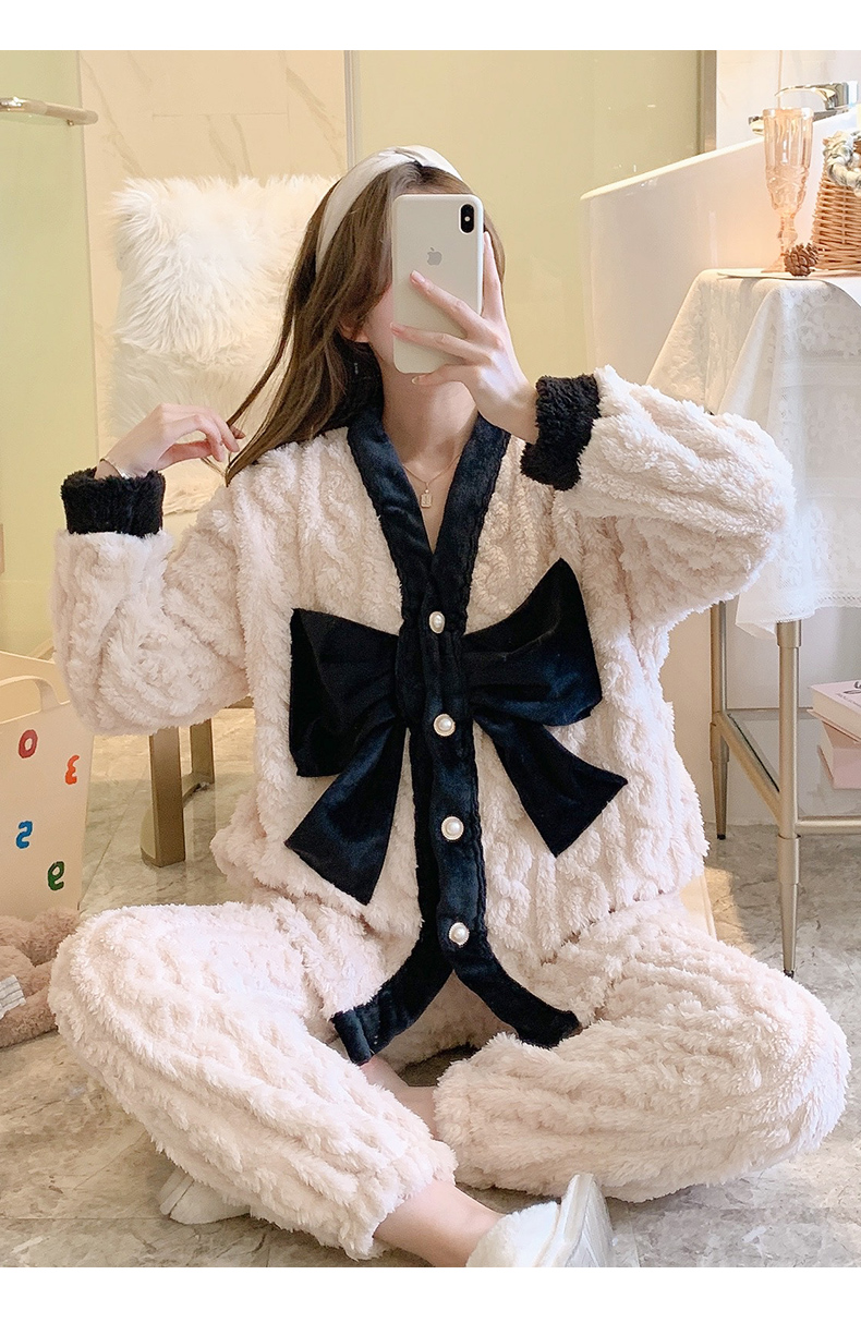 睡衣秋冬女珊瑚絨加厚加絨保暖可愛2023年新款法蘭絨家居服冬季