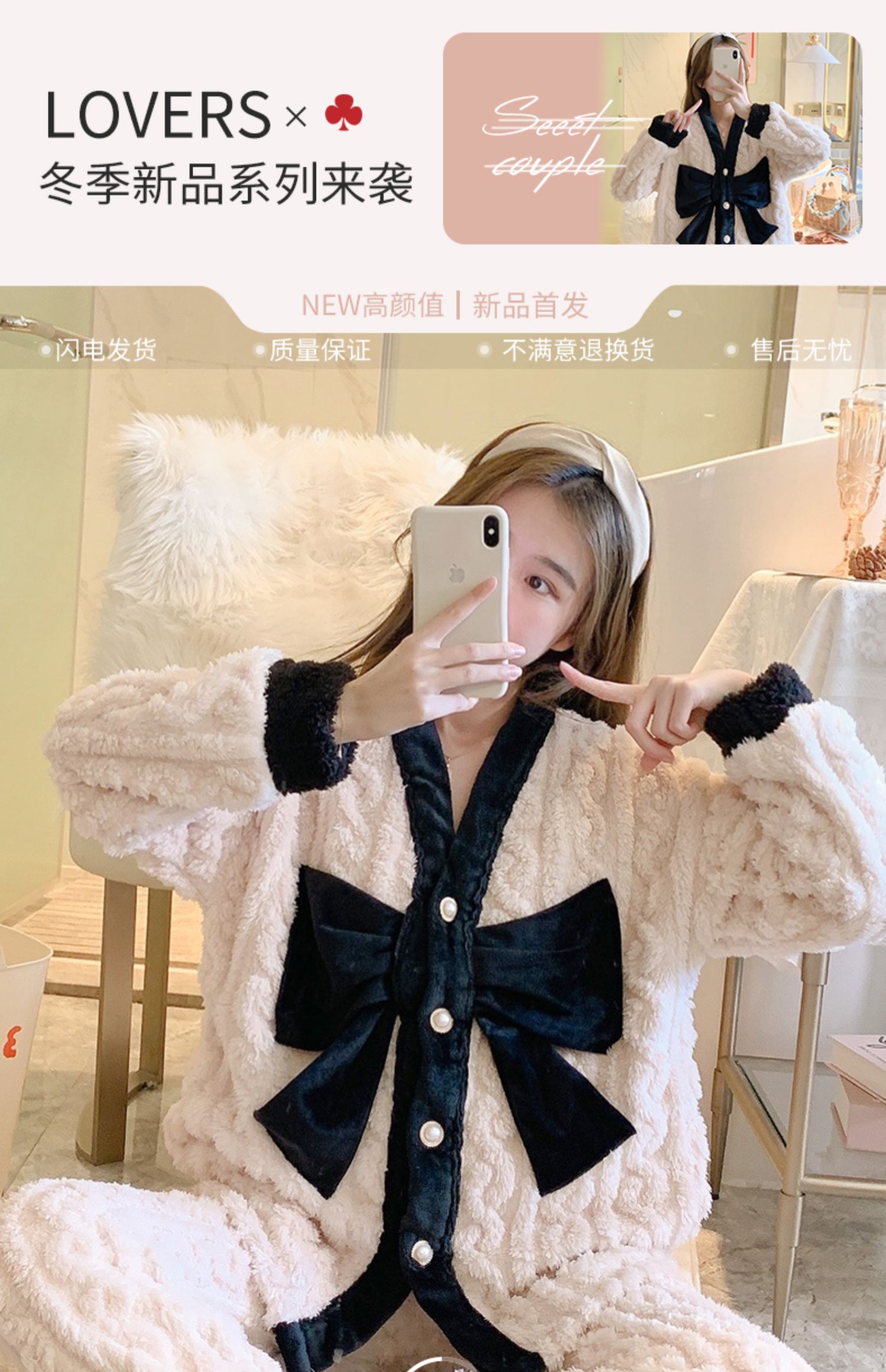 秋冬季珊瑚絨加絨純色冬天睡衣