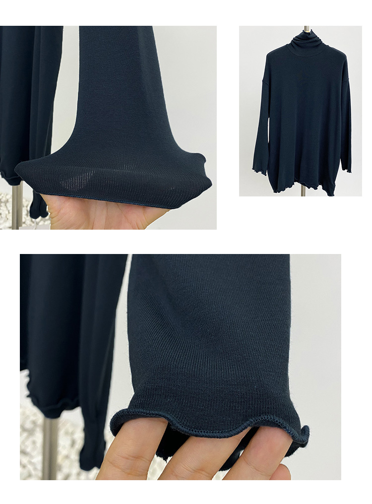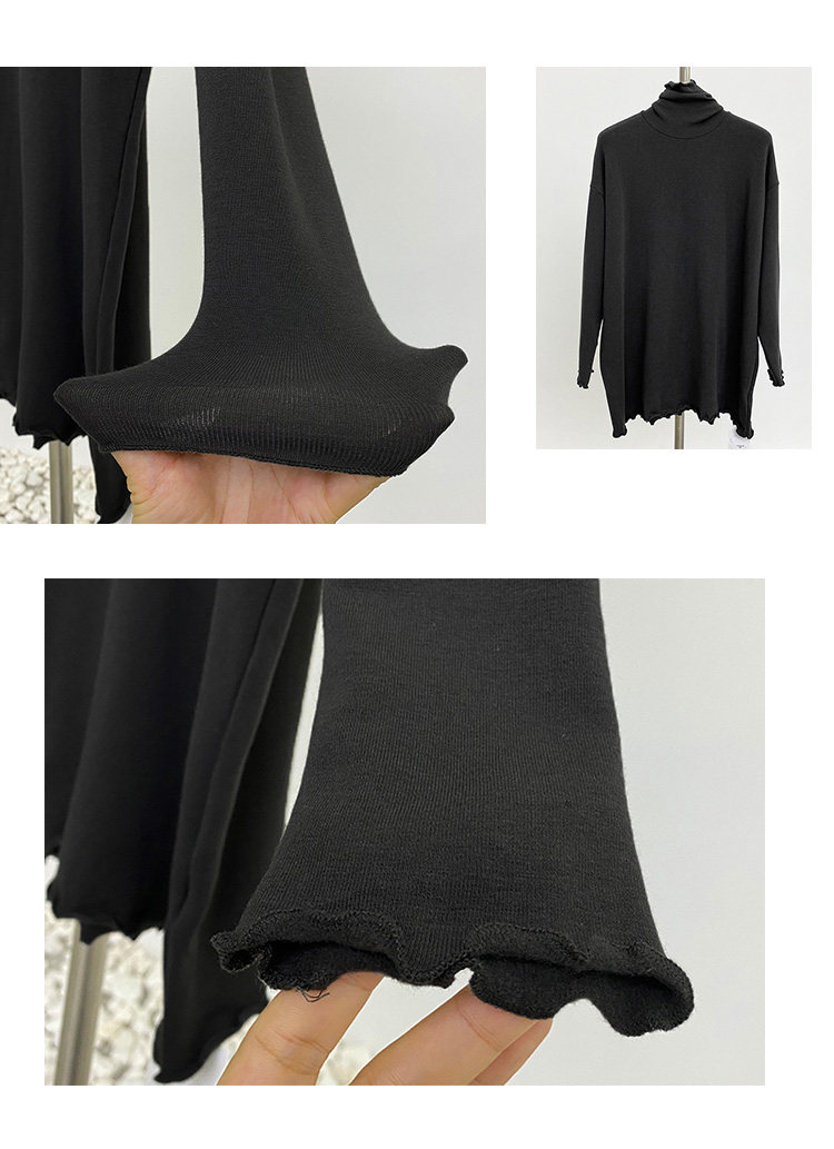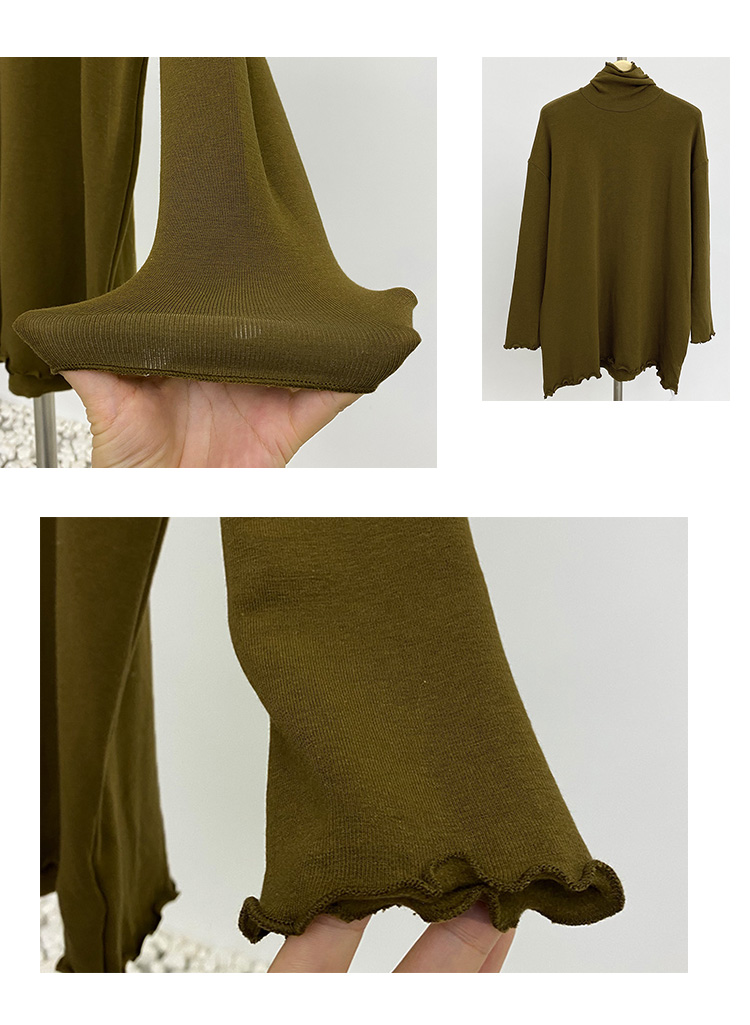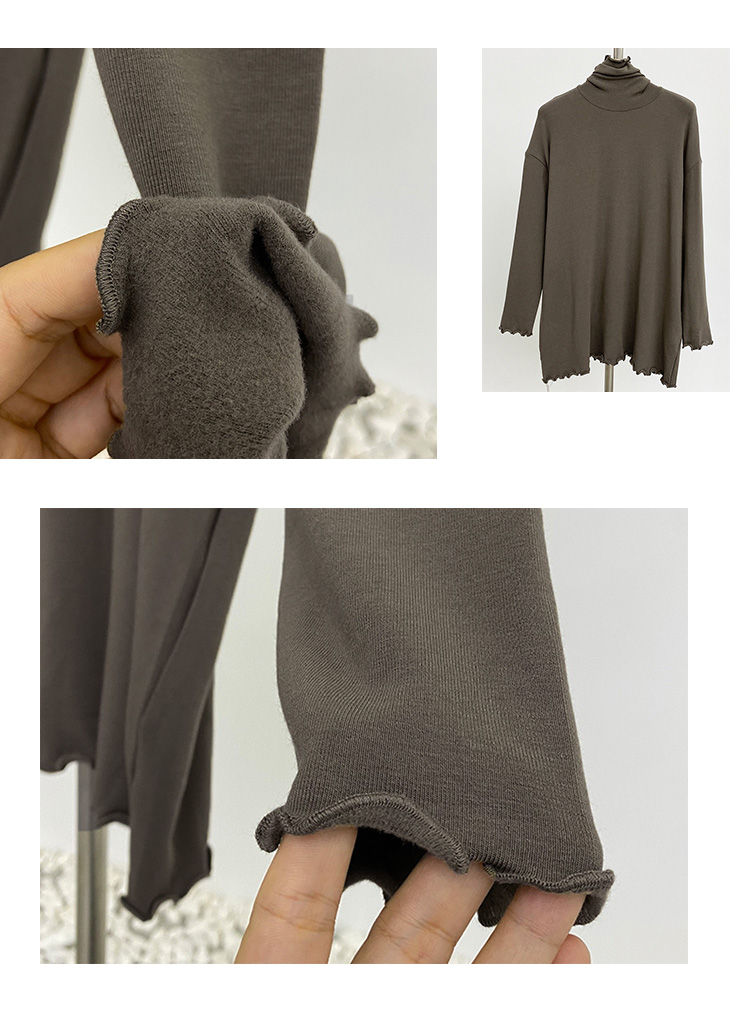 元熙621木耳邊高領寬松中長打底衫女秋冬大版加絨加厚內搭上衣女