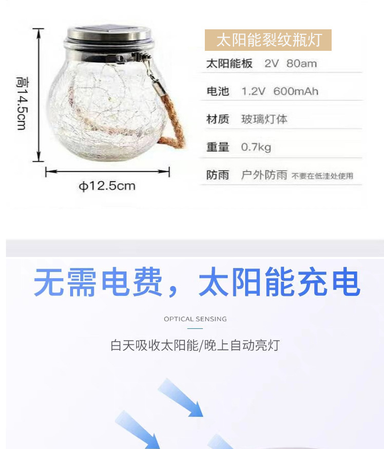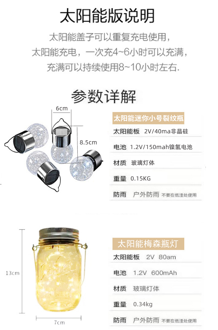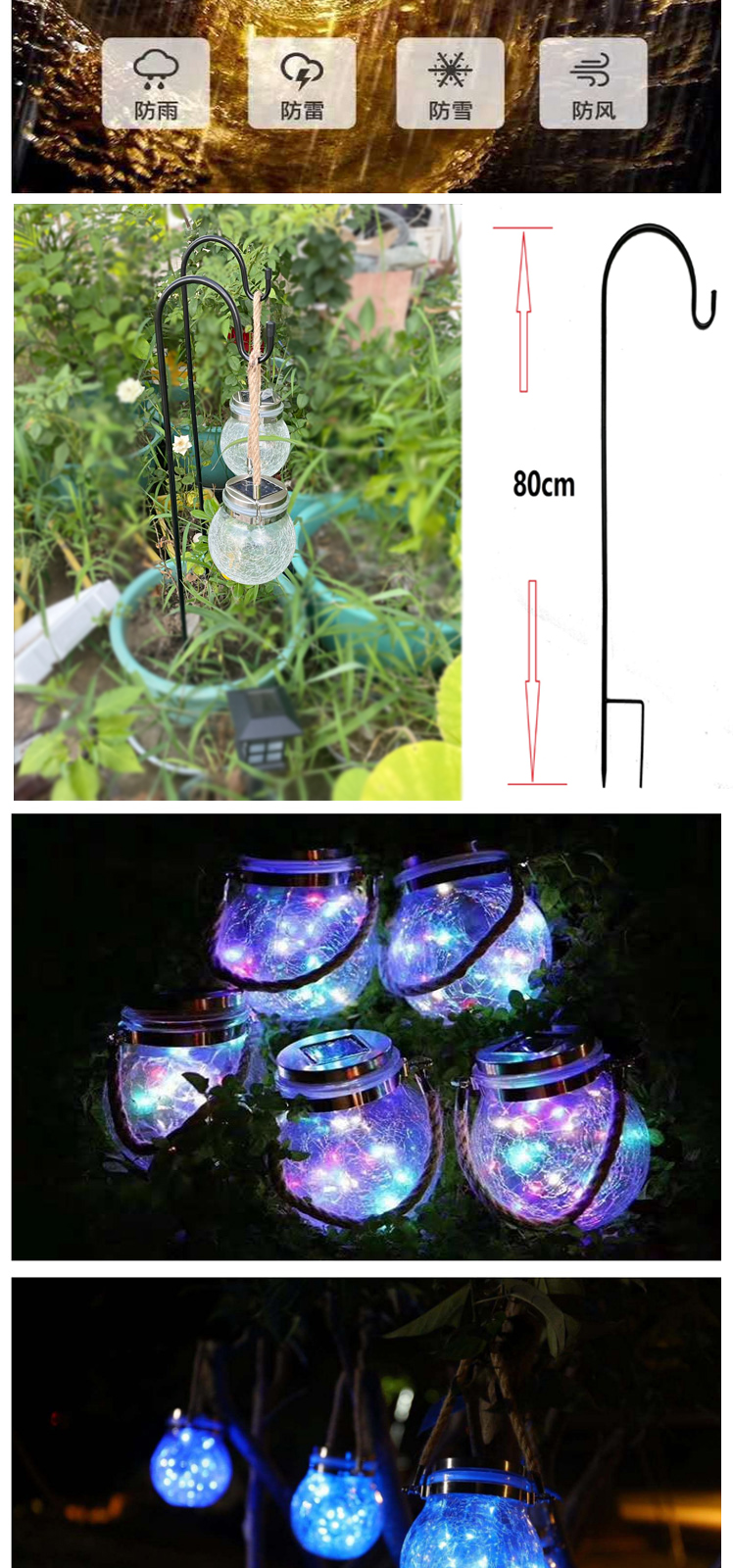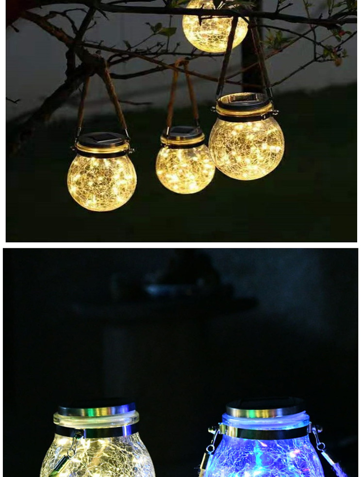 太陽能裂紋燈玻璃許愿燈戶外防水庭院梅森瓶子掛樹燈陽臺民宿裝飾