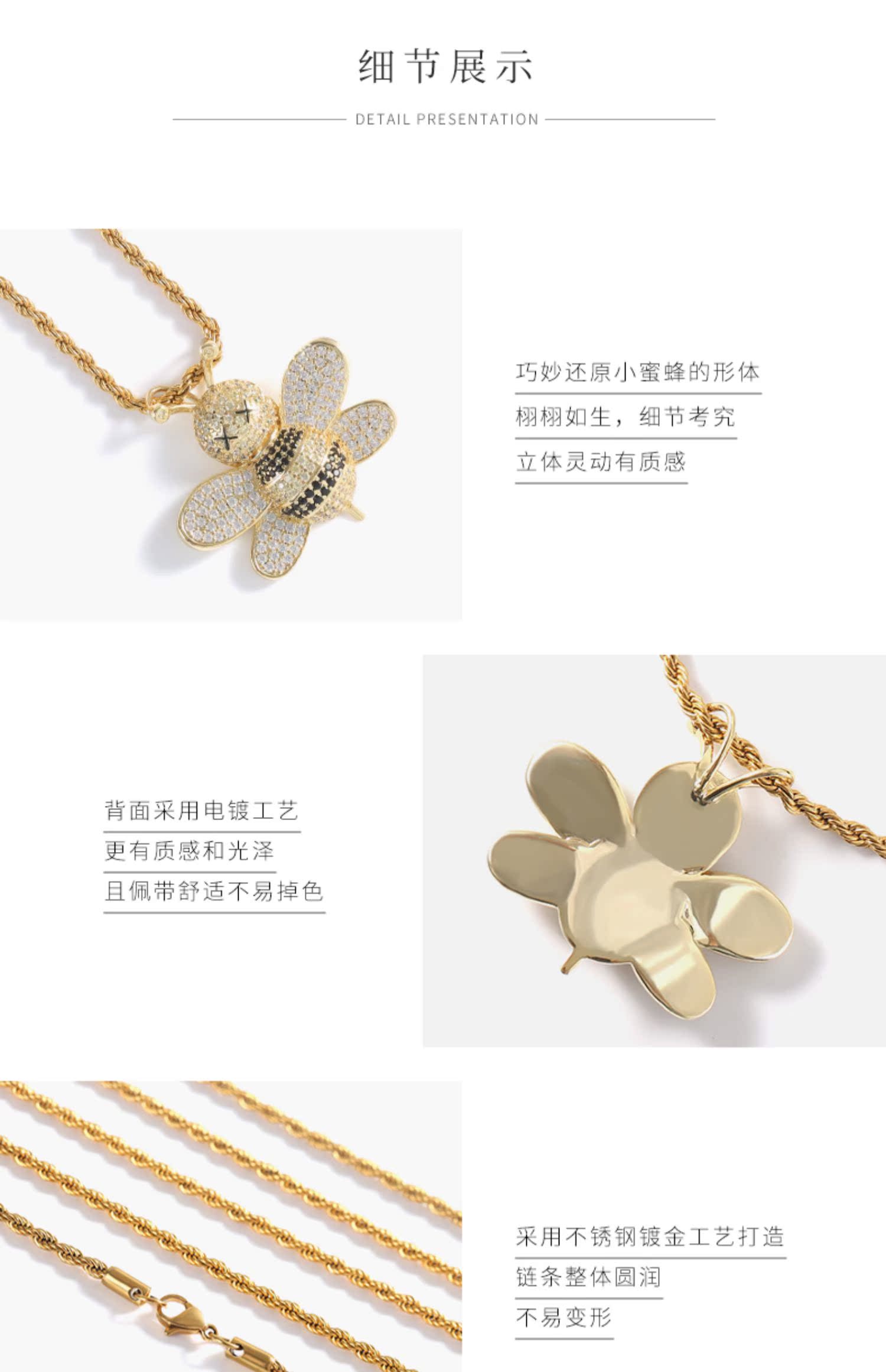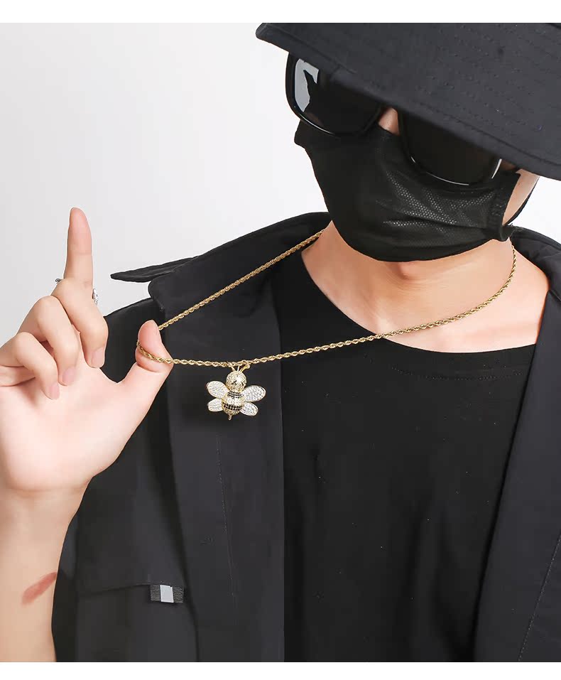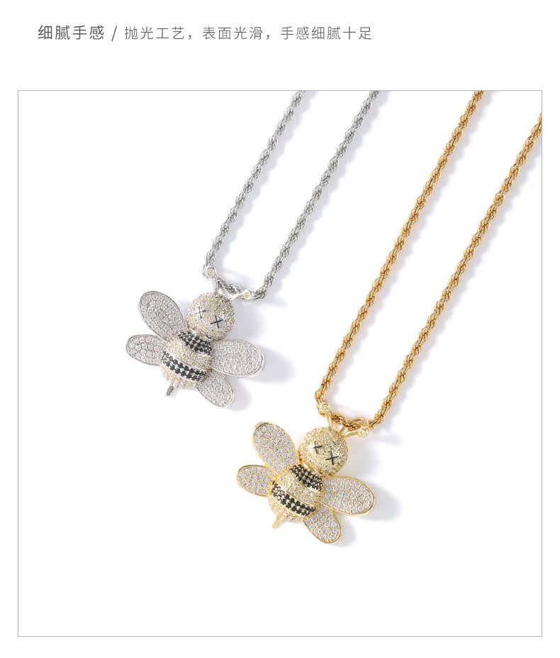 歐美潮牌鑲鉆小蜜蜂吊墜項鏈男潮ins嘻哈個性百搭街頭情侶配飾女