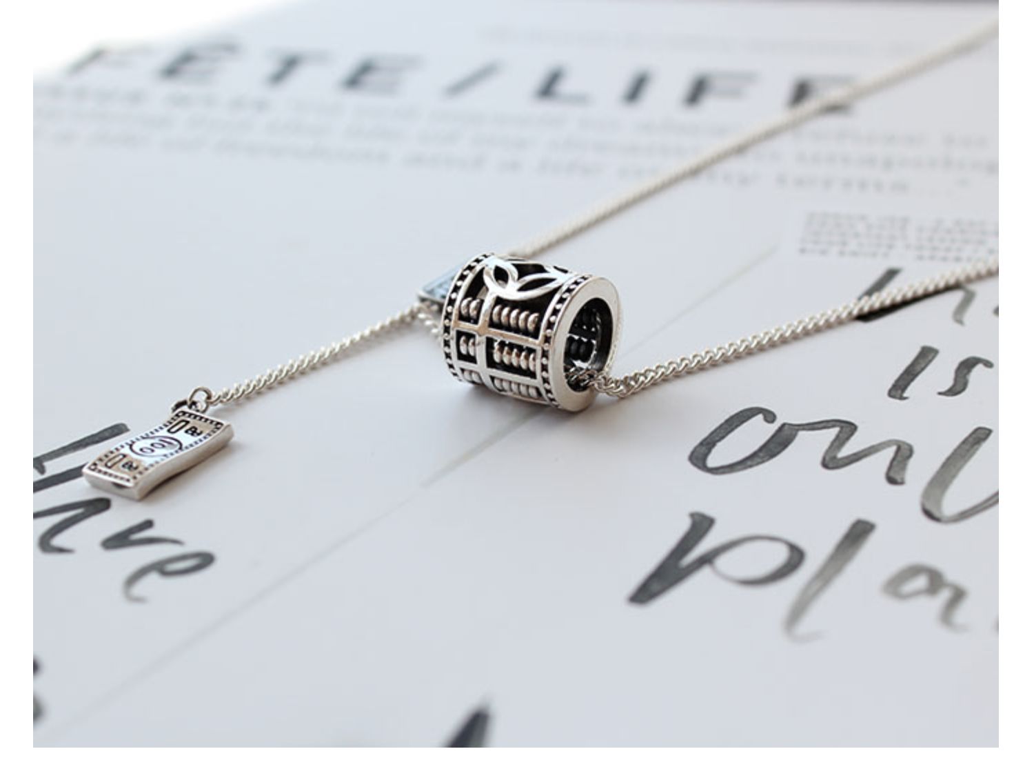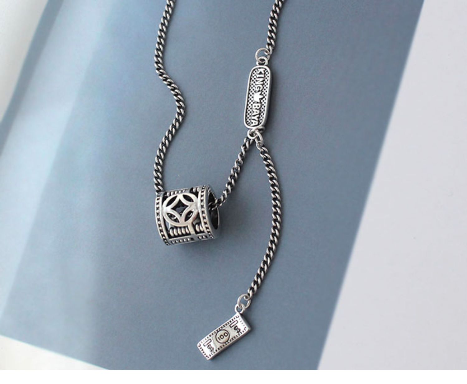 925純銀韓版小眾轉運珠吊墜項鏈個性做舊算盤毛衣鏈銀飾女鎖骨鏈