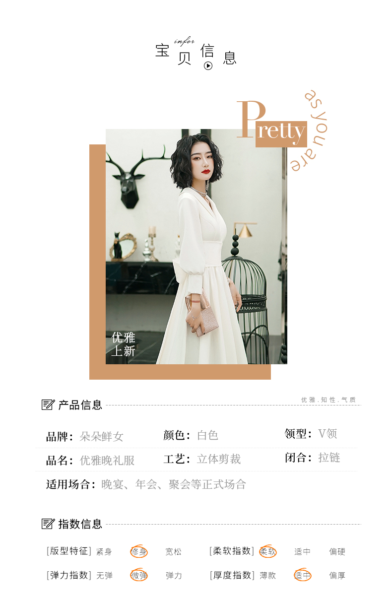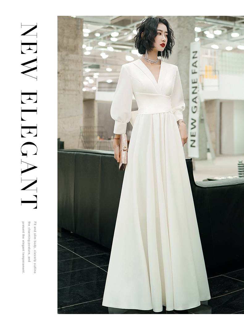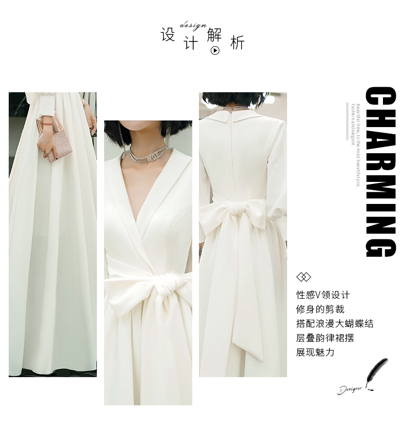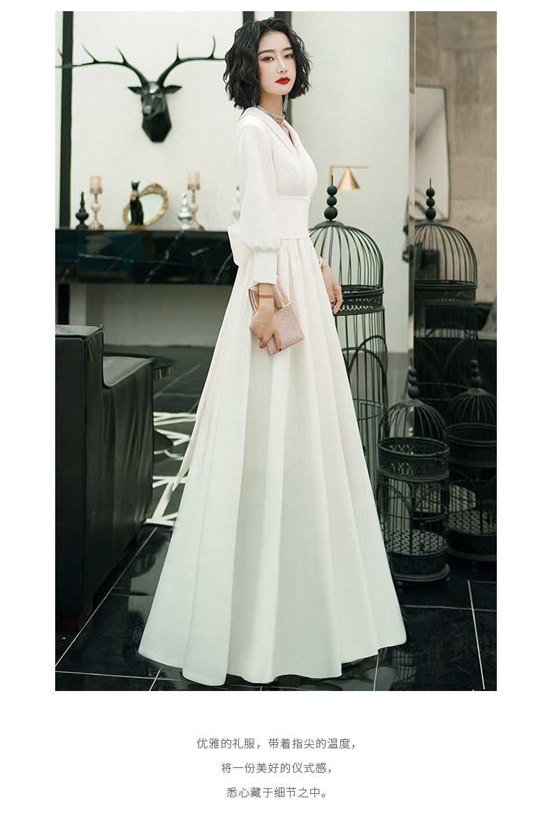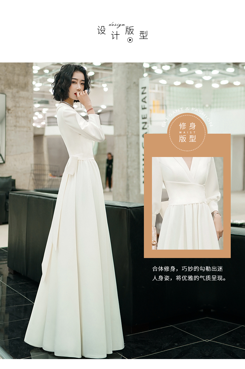 白色晚禮服女宴會高貴氣質高端年會主持人連衣裙合唱演出服長款