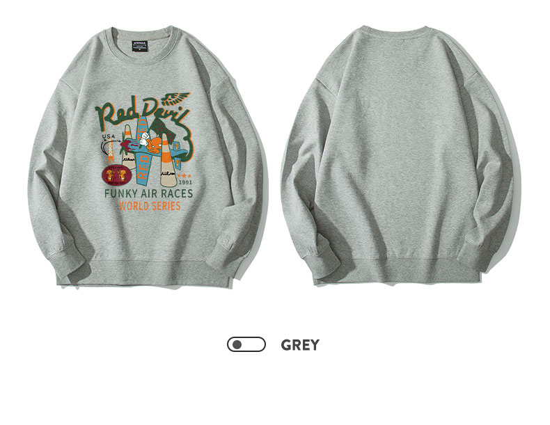 美式復古印花黑色無帽圓領新款衛衣
