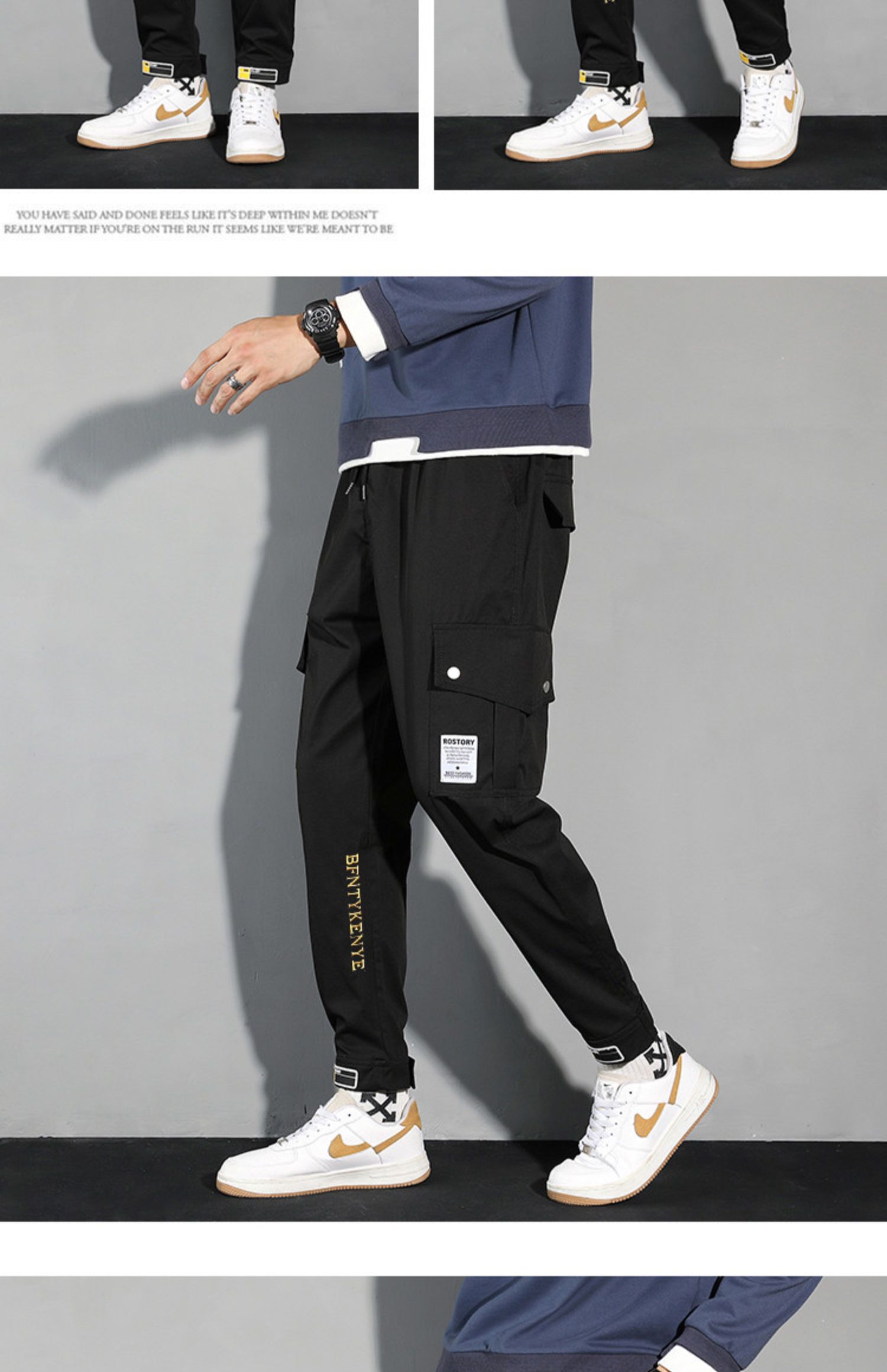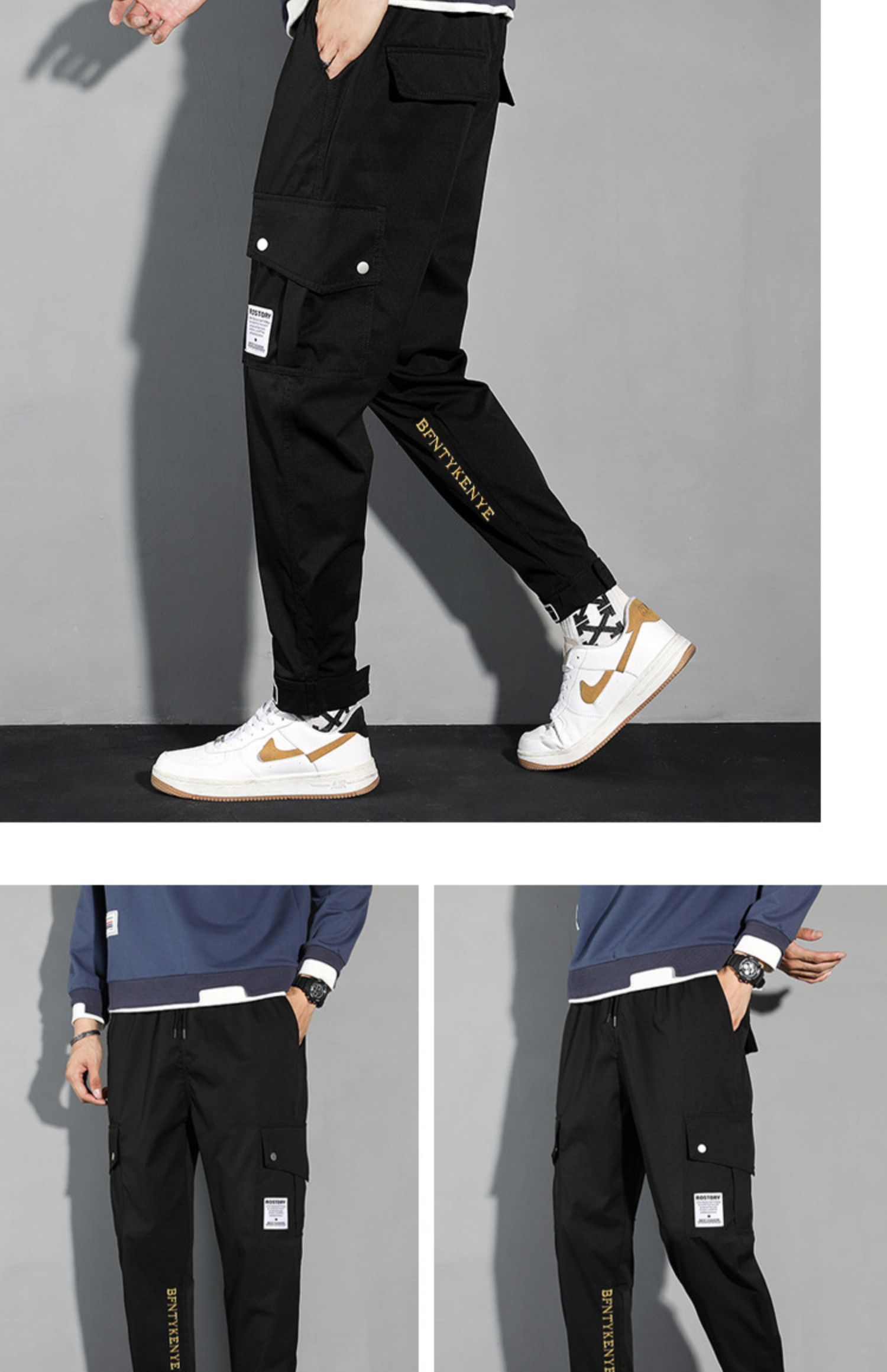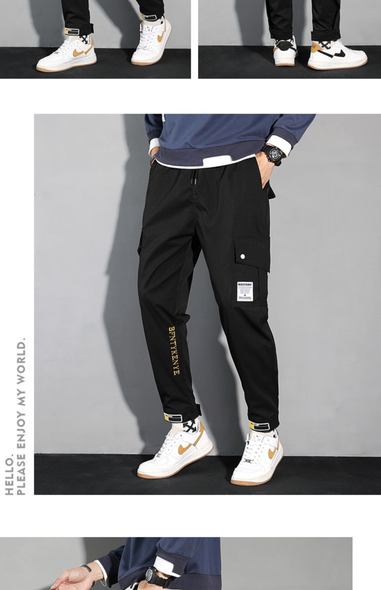 男士韓版潮流休閑小腳長褲學生百搭運動束腳褲春秋季九分工裝褲子