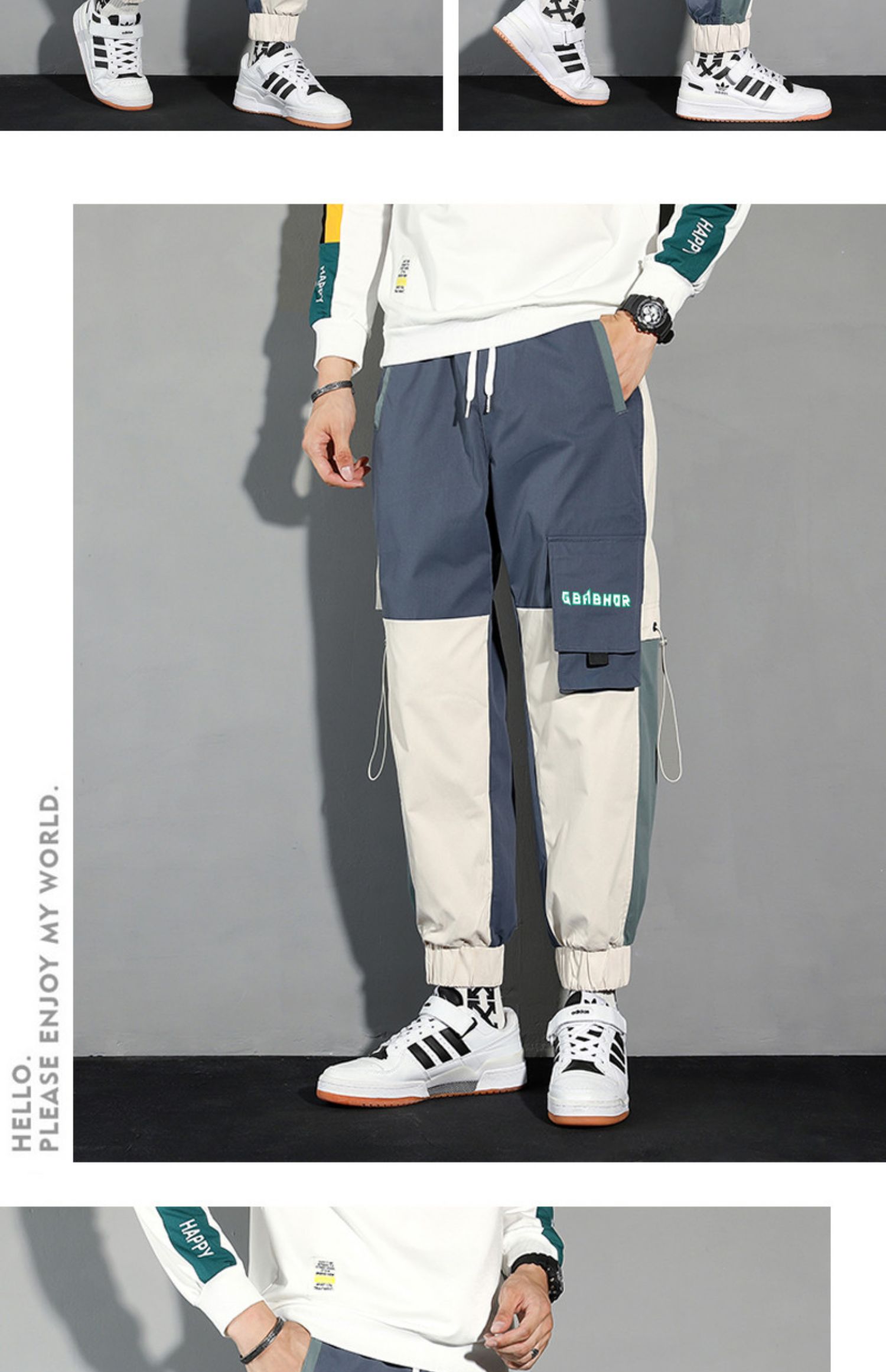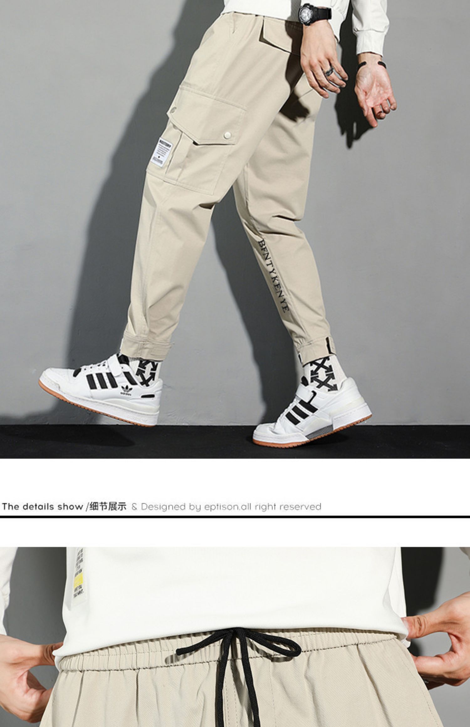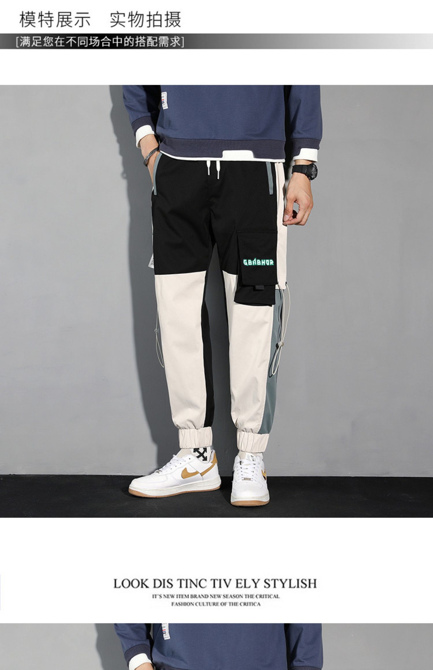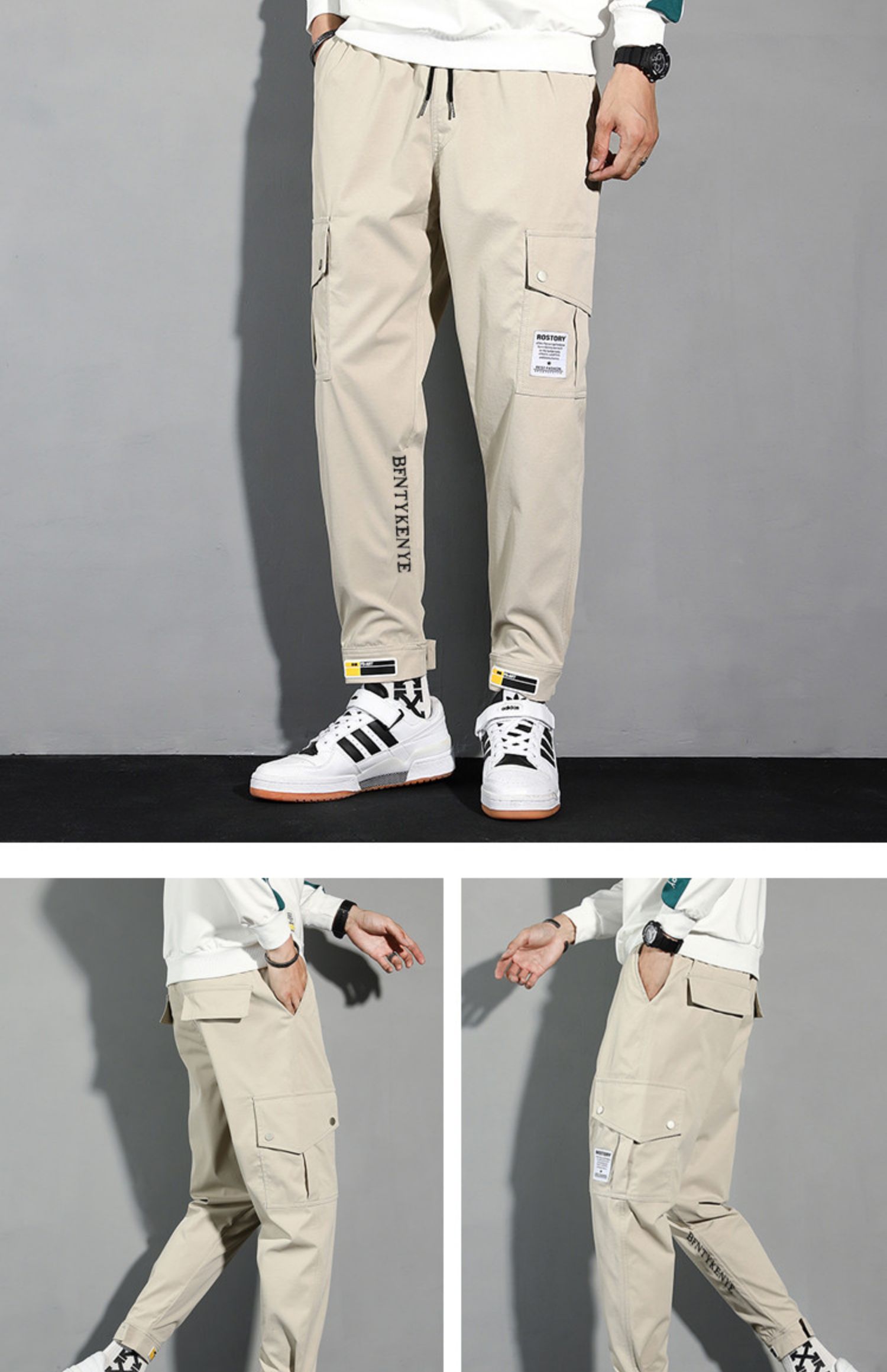 男士韓版潮流休閑小腳長褲學生百搭運動束腳褲春秋季九分工裝褲子