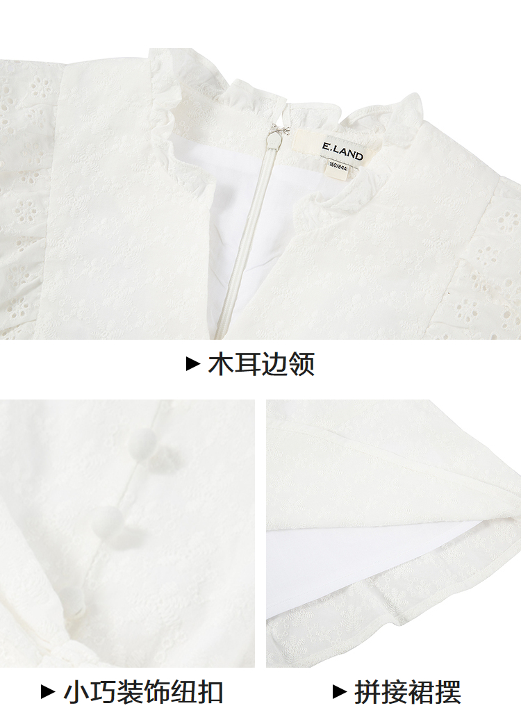 Eland衣戀夏季新款小眾溫柔氣質初戀風森系少女蕾絲收腰連衣裙女