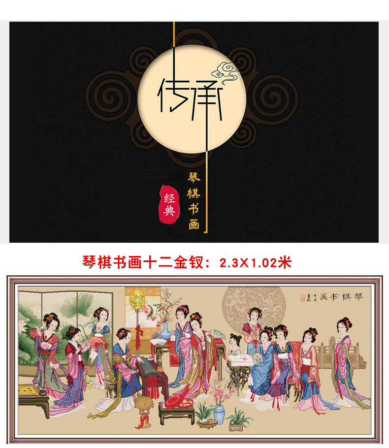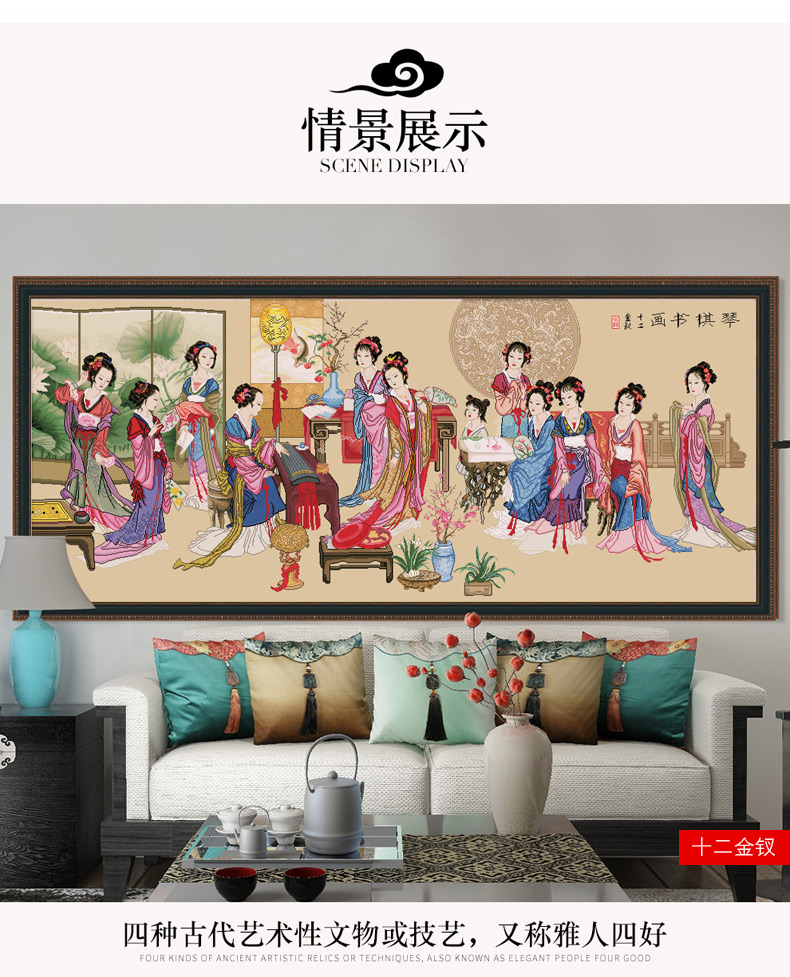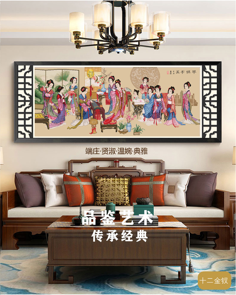 十二金釵十字繡琴棋書畫2023新款客廳線繡紅樓群芳圖十八美女人物