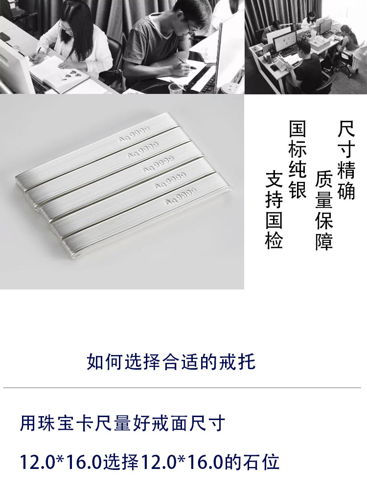 925純銀戒托男款帶爪鑲嵌翡翠戒指