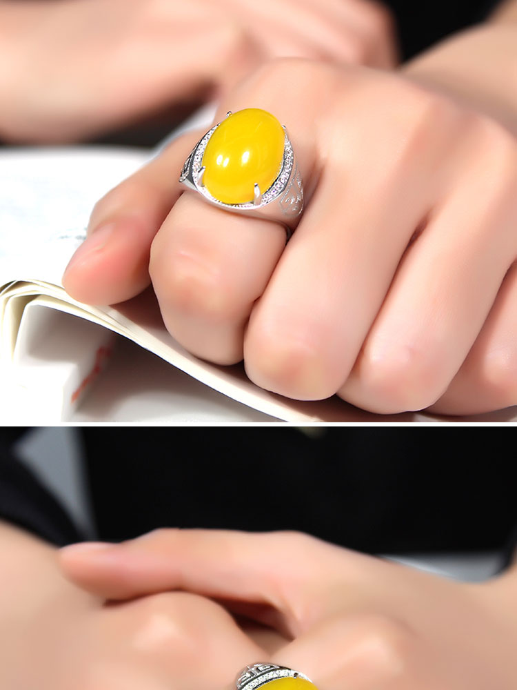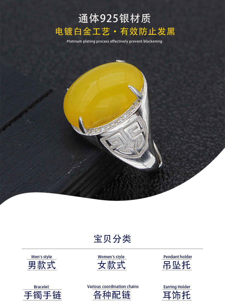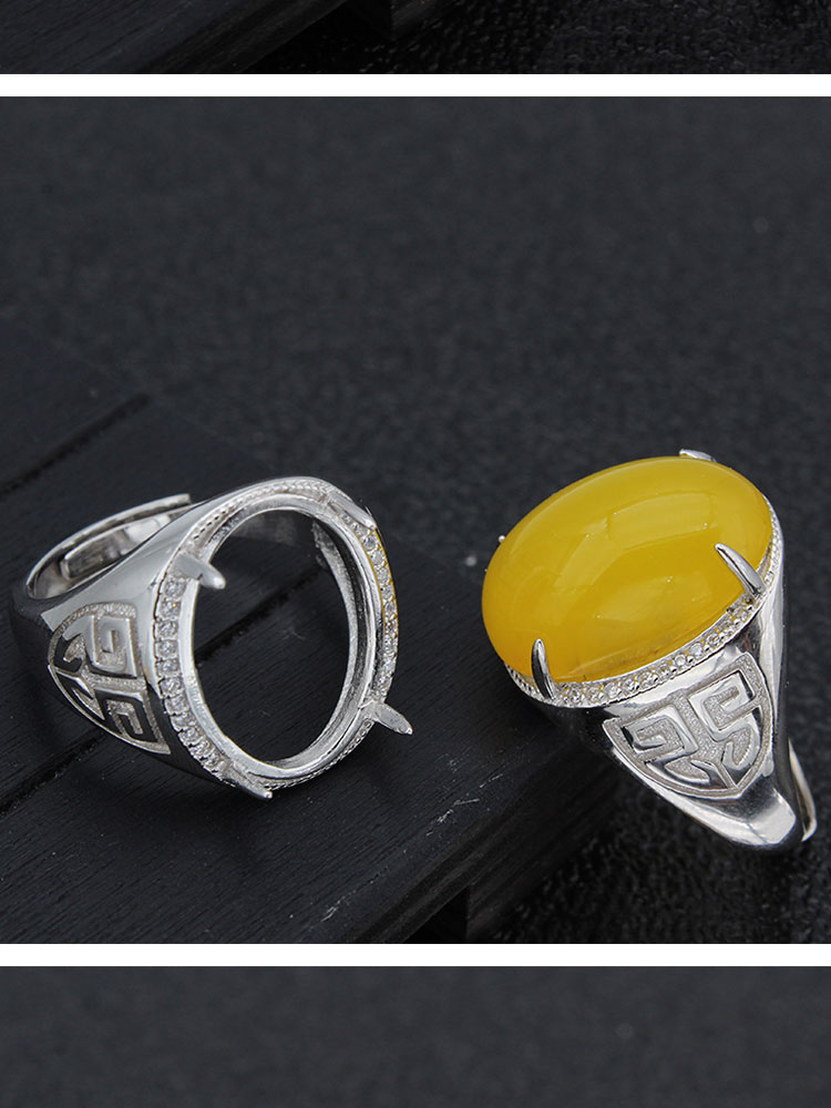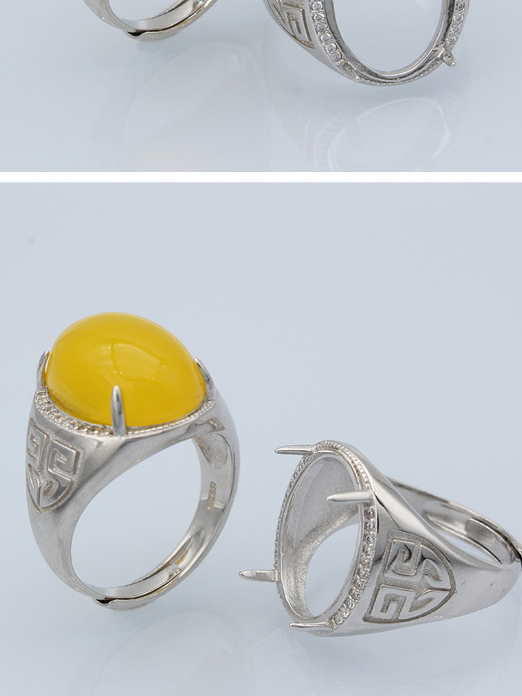 925純銀戒托男帶爪鑲嵌翡翠蜜蠟戒指空托13.5*17.5 13*16.5戒指托