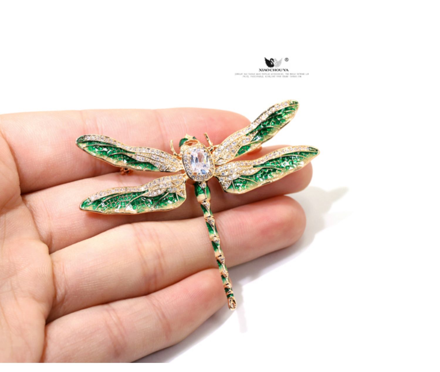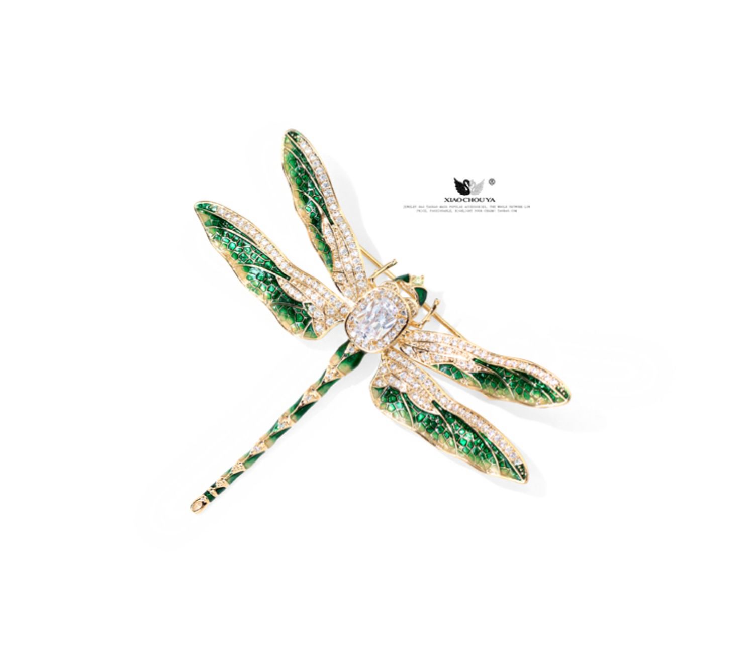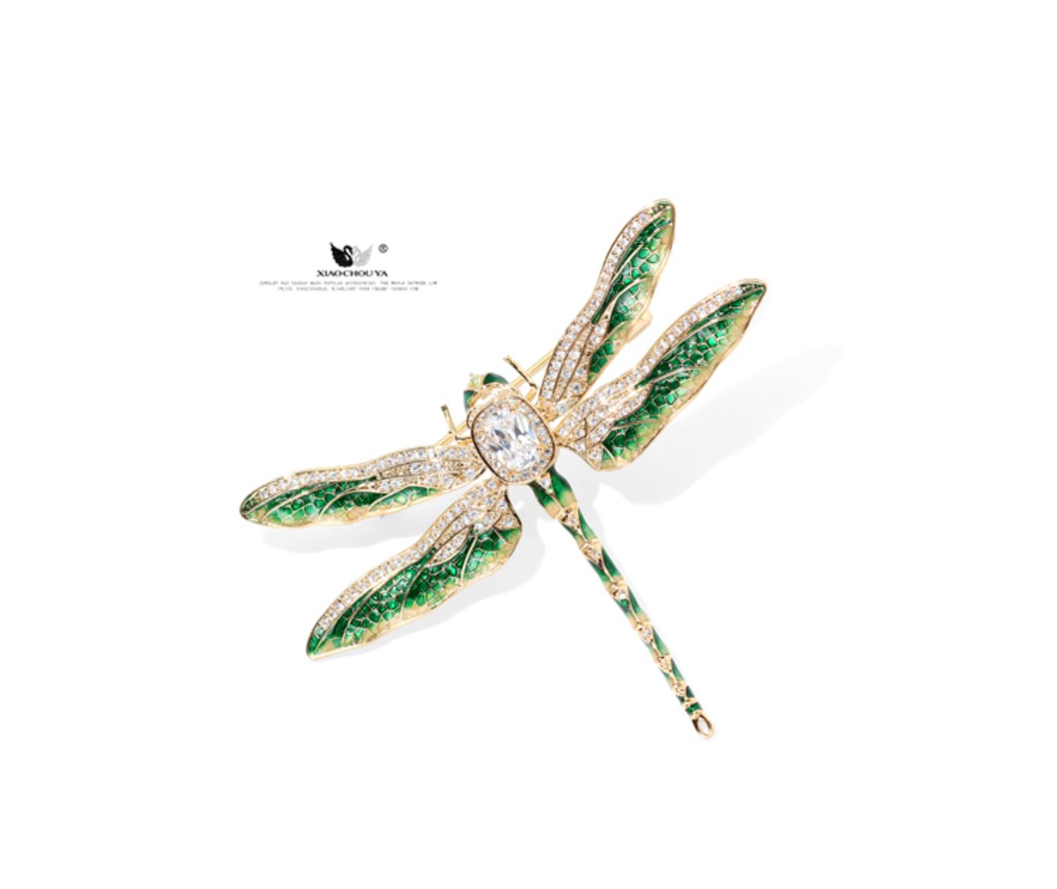 宮廷復古琺瑯彩綠蜻蜓胸針精致微鑲鋯石別針氣質大衣外套配飾胸花