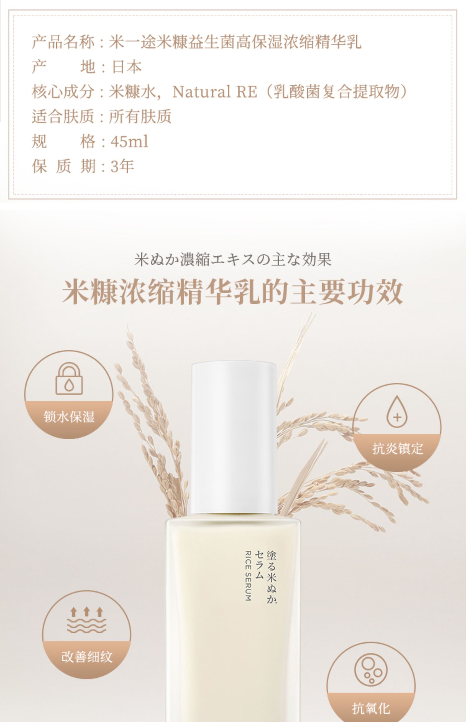 日本米一途益生菌高保濕濃縮面部精華液45ml酵母補水抗氧緊致修護