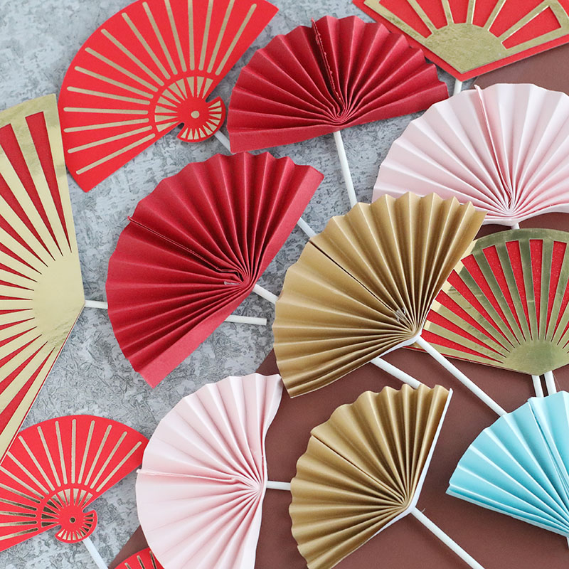 10套烘焙裝飾紅色扇子扇形蛋糕插牌