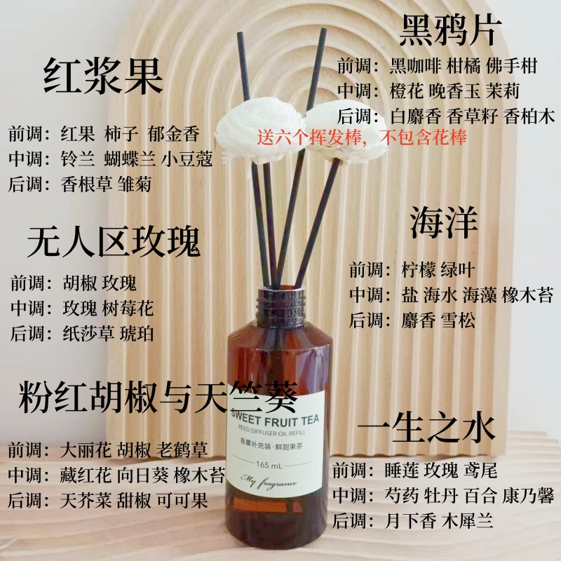 精選無火藤條香薰補充液微醺玫瑰藤條香氛葡萄柚紅醋栗白茶補充裝