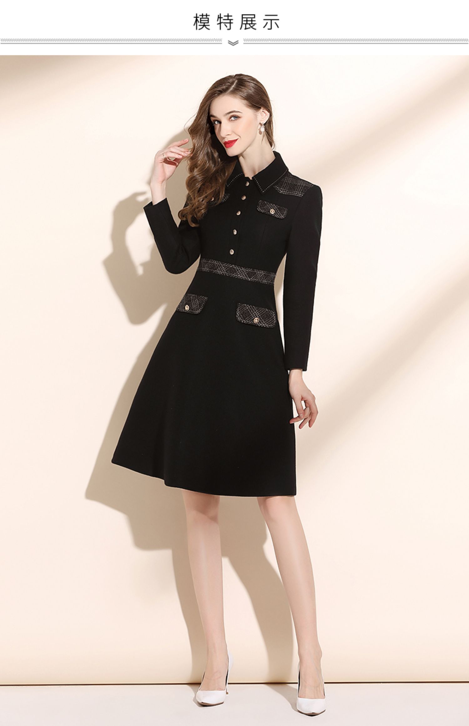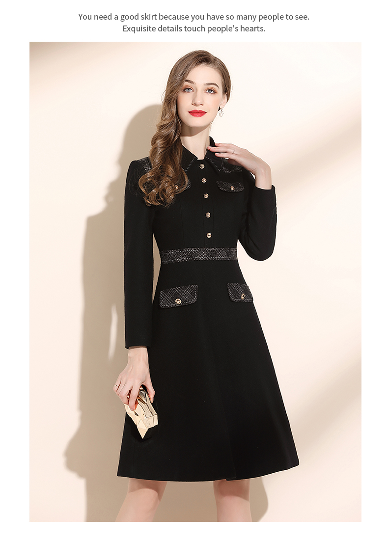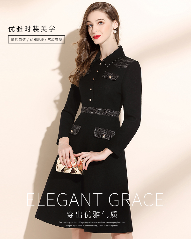 高端毛呢秋冬2022年新款翻領連衣裙