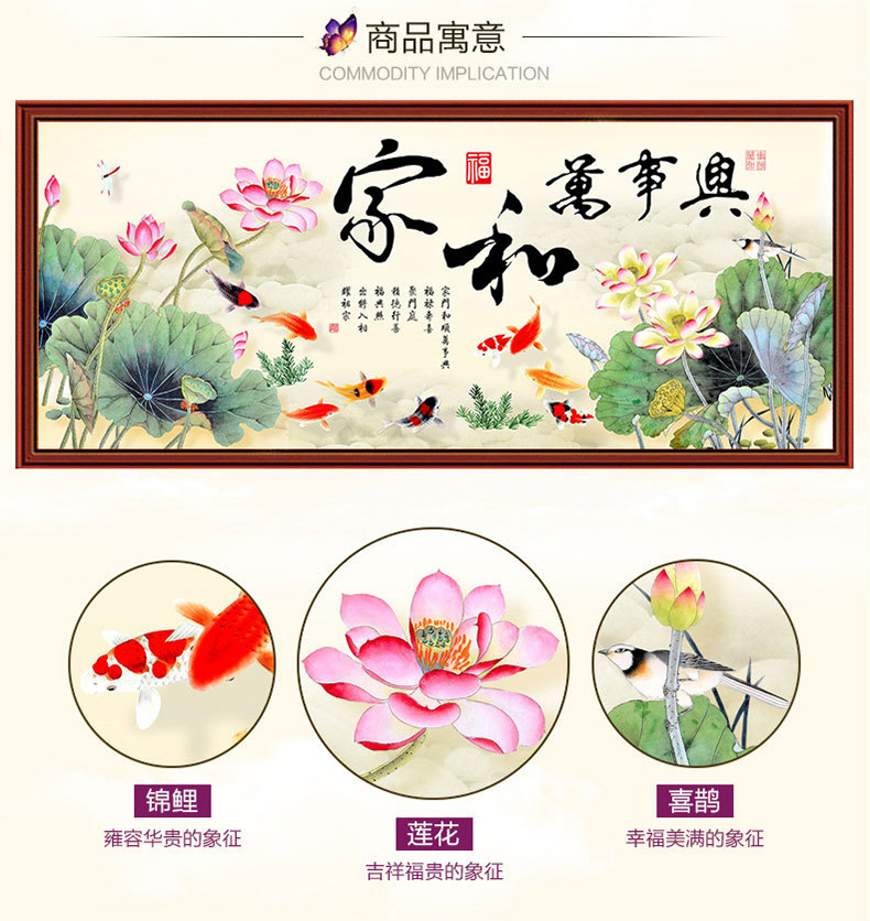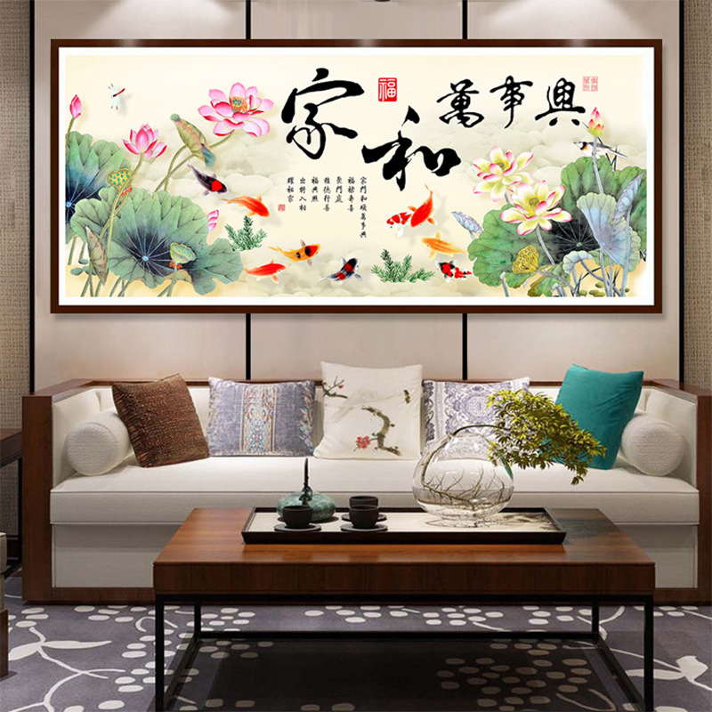 5d新中式鉆石畫滿鉆家和萬事興荷花九魚圖貼鉆十字繡客廳年年有余