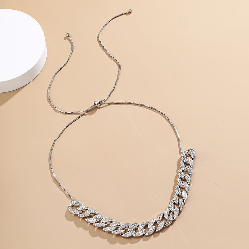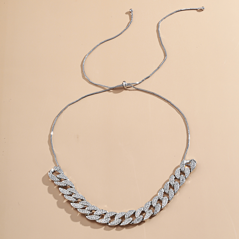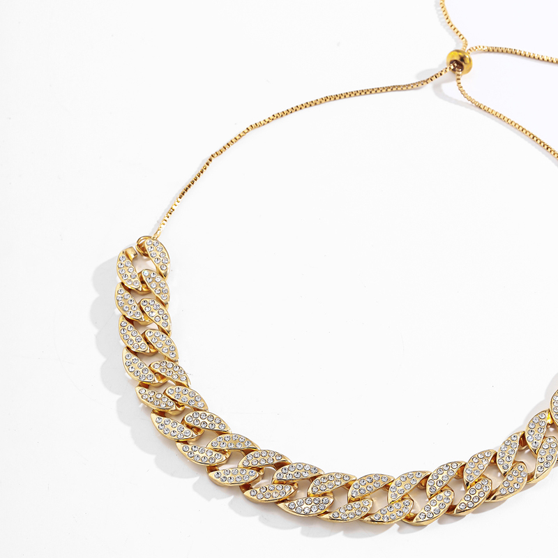 鑲鉆古巴鏈可調節扣項鏈女 歐美時尚輕奢氣質ins風小眾設計鎖骨鏈