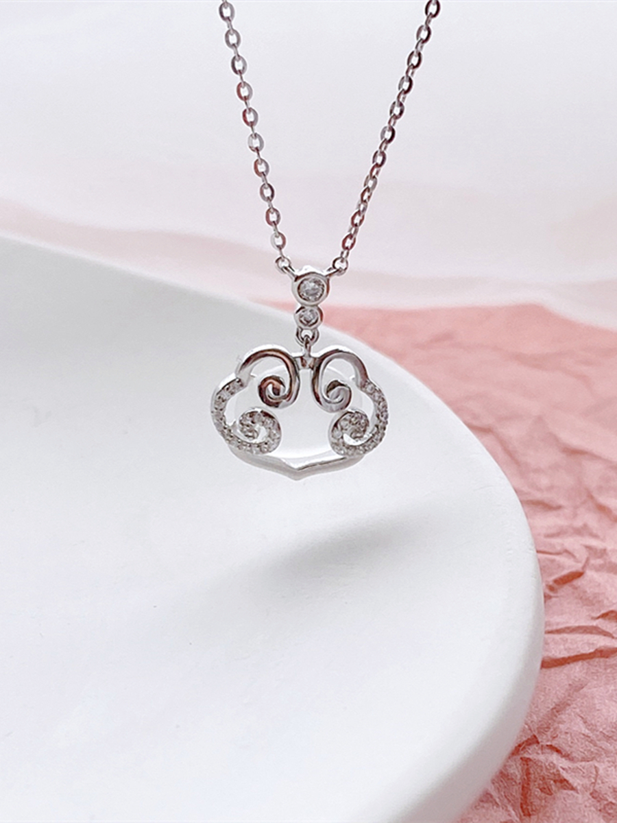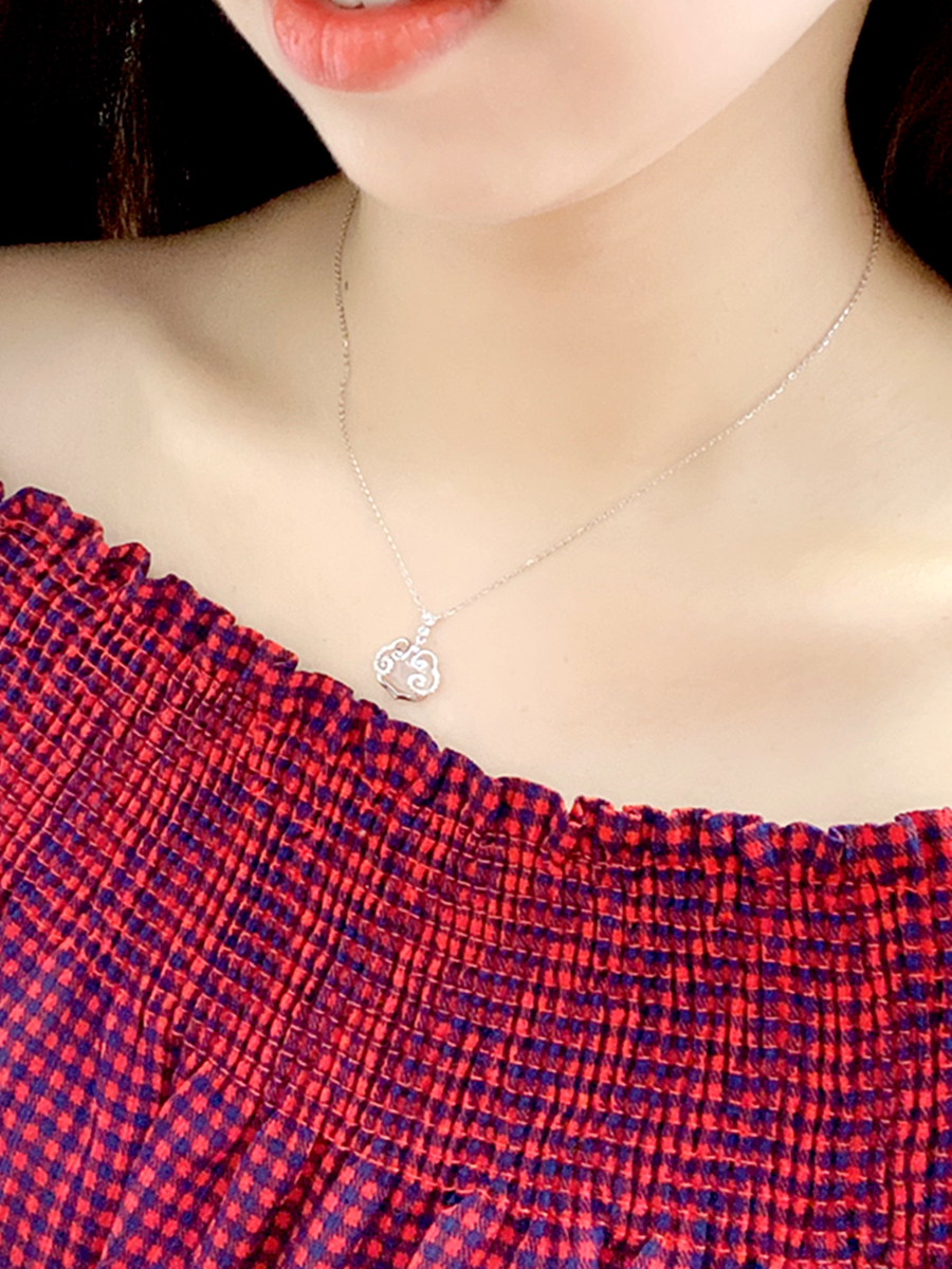 簡唯銀飾s925祥云玉髓如意鎖長命鎖項鏈女純銀中國風ins鎖骨鏈
