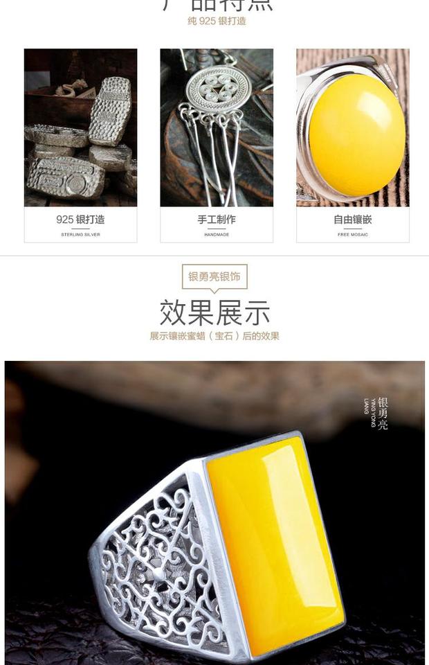 925銀男戒托鑲嵌蜜蠟綠松封底戒指