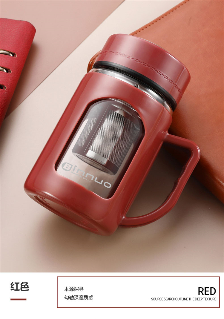 希樂玻璃杯雙層男士辦公桌面泡茶水杯帶把手個人專用茶水分離杯子
