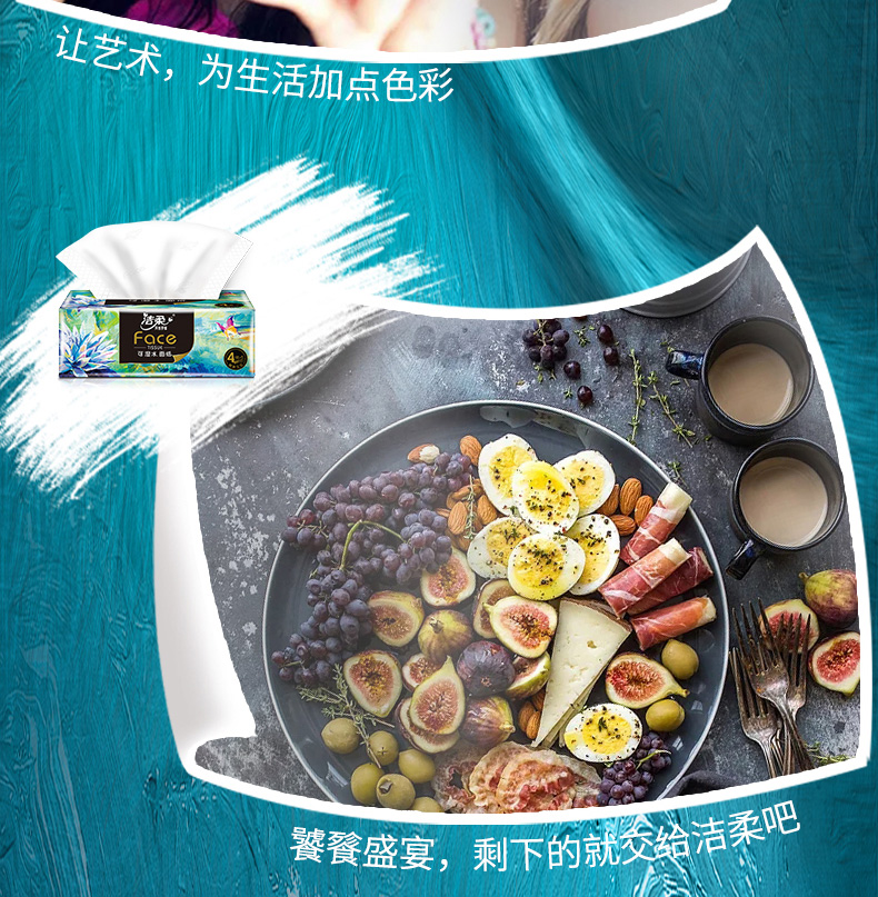 潔柔紙巾油畫抽紙4層加厚家用衛生紙實惠裝8大包批大可濕水餐巾紙