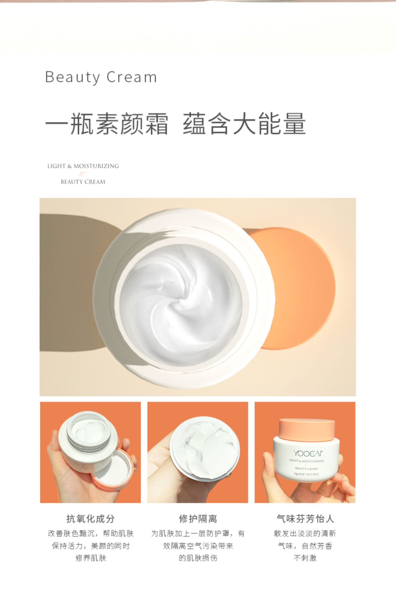 YOOEAI/養汐素顏霜輕透潤亮美顏霜遮瑕痘印提亮懶人男女裸妝面霜