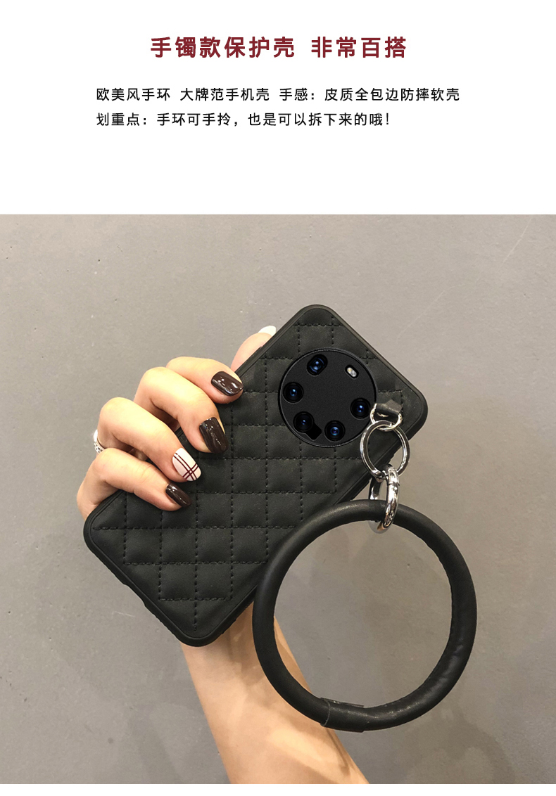 華為mate60手環手機殼mate30pro真皮殼MATE50PRO軟掛手環mate40RS斜挎套網紅手機套歐美時尚適用于