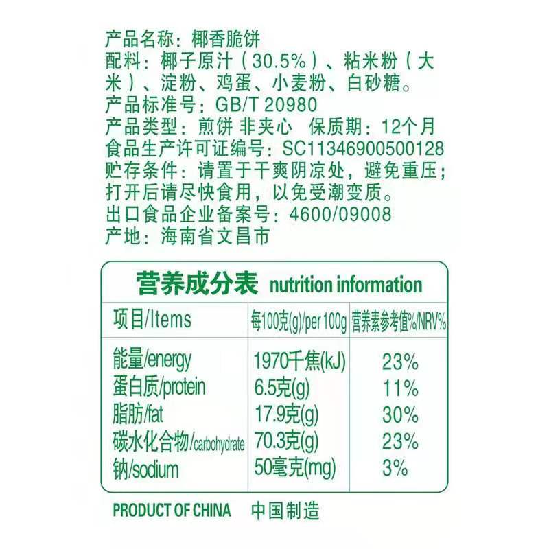 春光椰香脆餅1000克散裝正宗椰奶椰子味薄脆餅干零食小吃海南特產