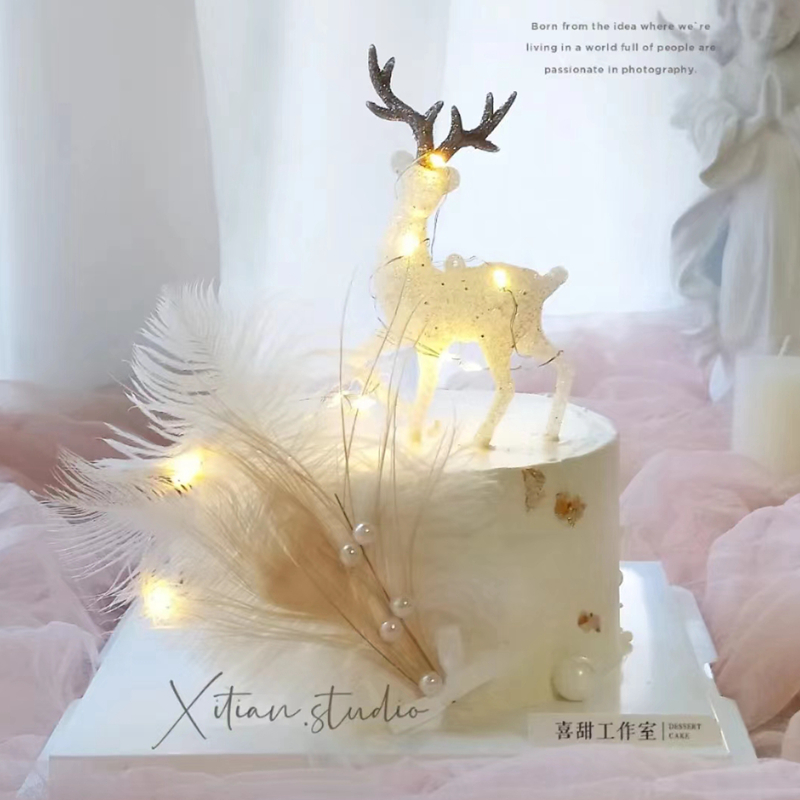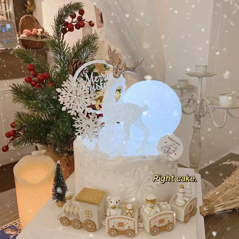 圣誕快樂亞克力插件蛋糕裝飾圣誕樹生日插牌金色雪花麋鹿擺件配件