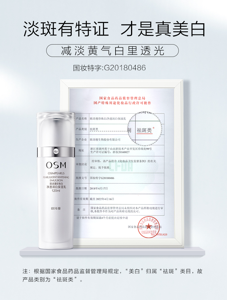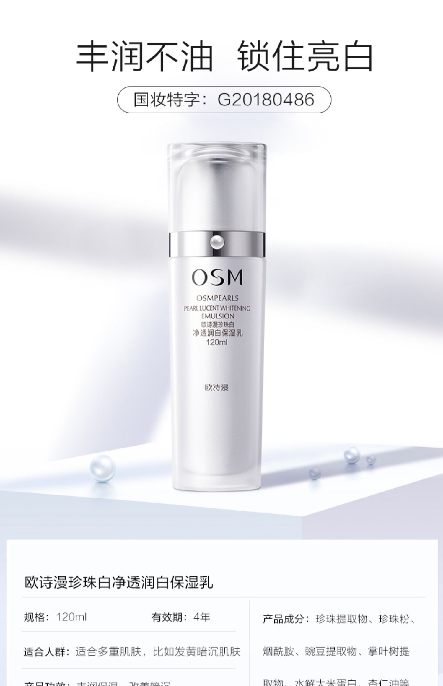歐詩漫珍珠白保濕乳液女美白旗艦店