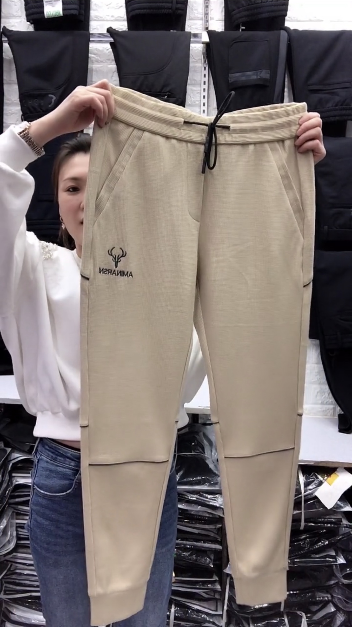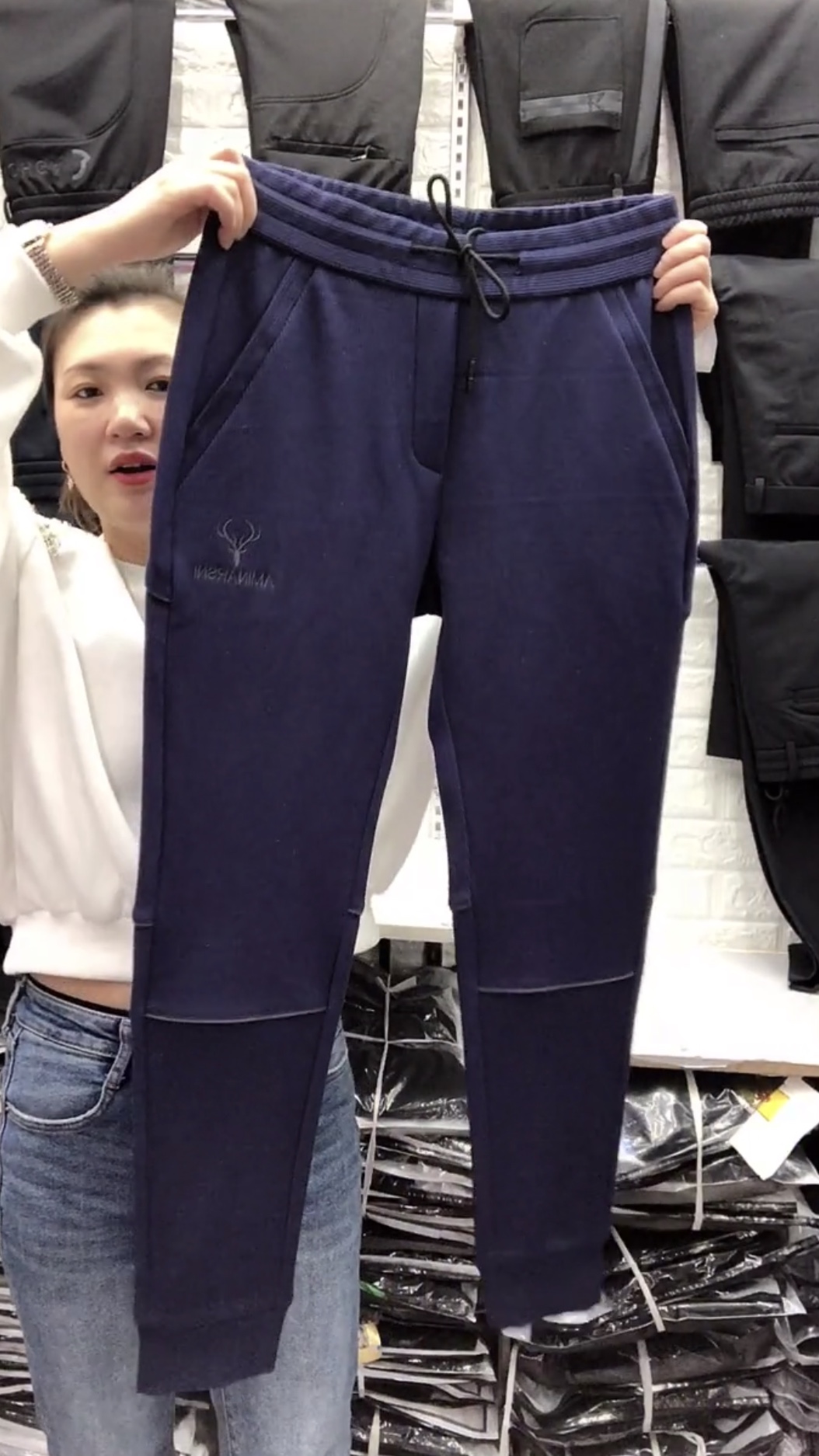6655刺繡小鹿修身小腳褲彈力舒適男士春季針織衛褲潮流百搭褲子男