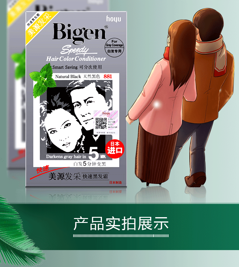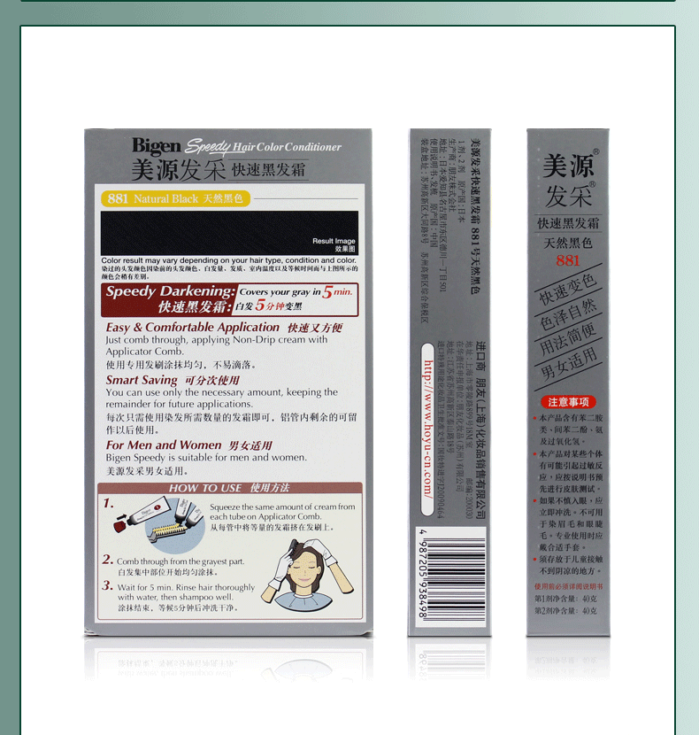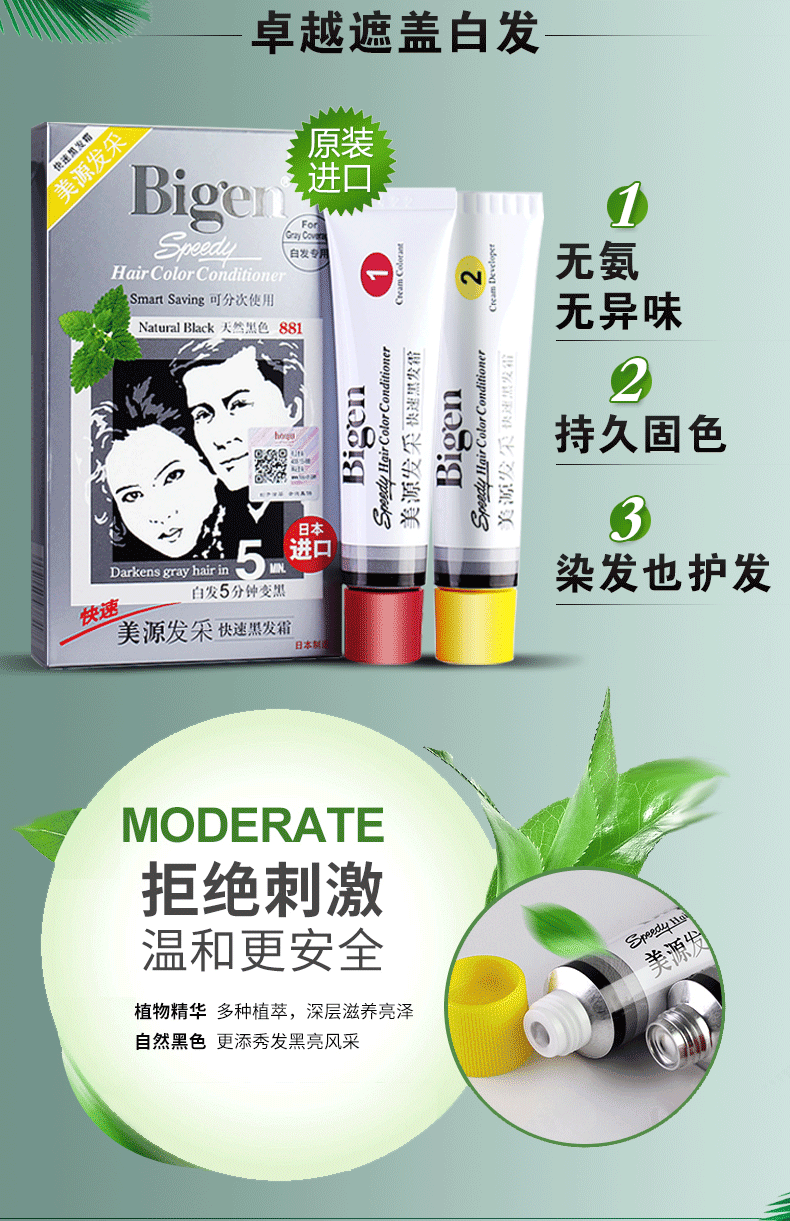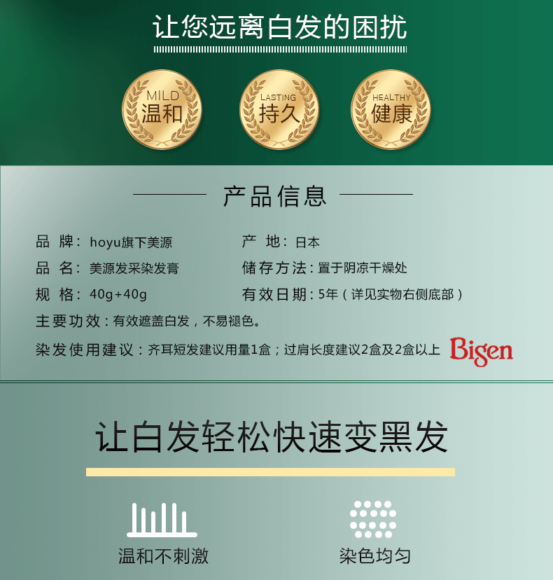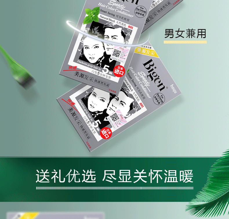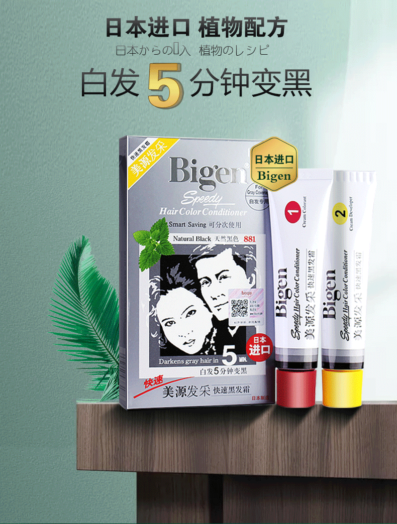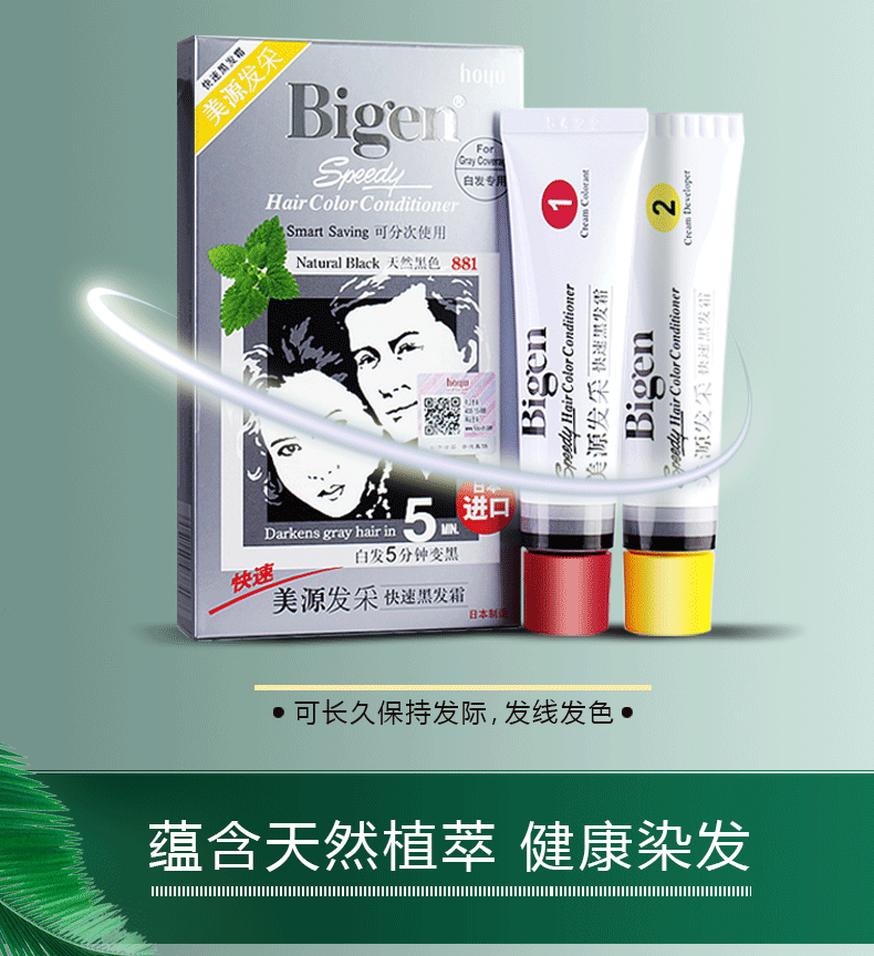 日本進口原裝美源發采植物白發染發劑純自然黑色一梳黑發霜染發膏