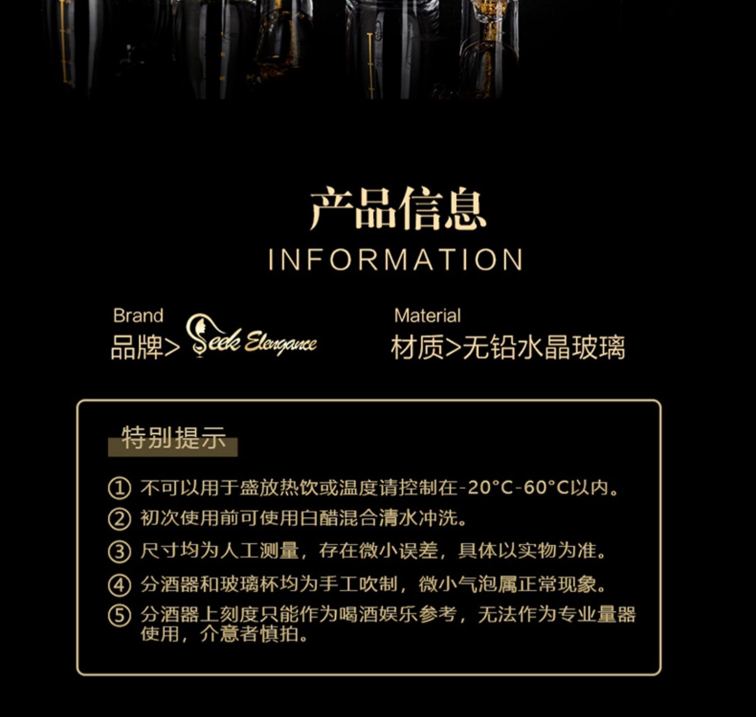 金箔高檔水晶二兩一兩100ml烈酒杯