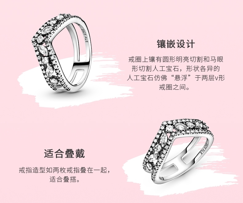 Pandora潘多拉閃耀馬眼寶石雙叉骨戒指925銀女輕奢小眾設計