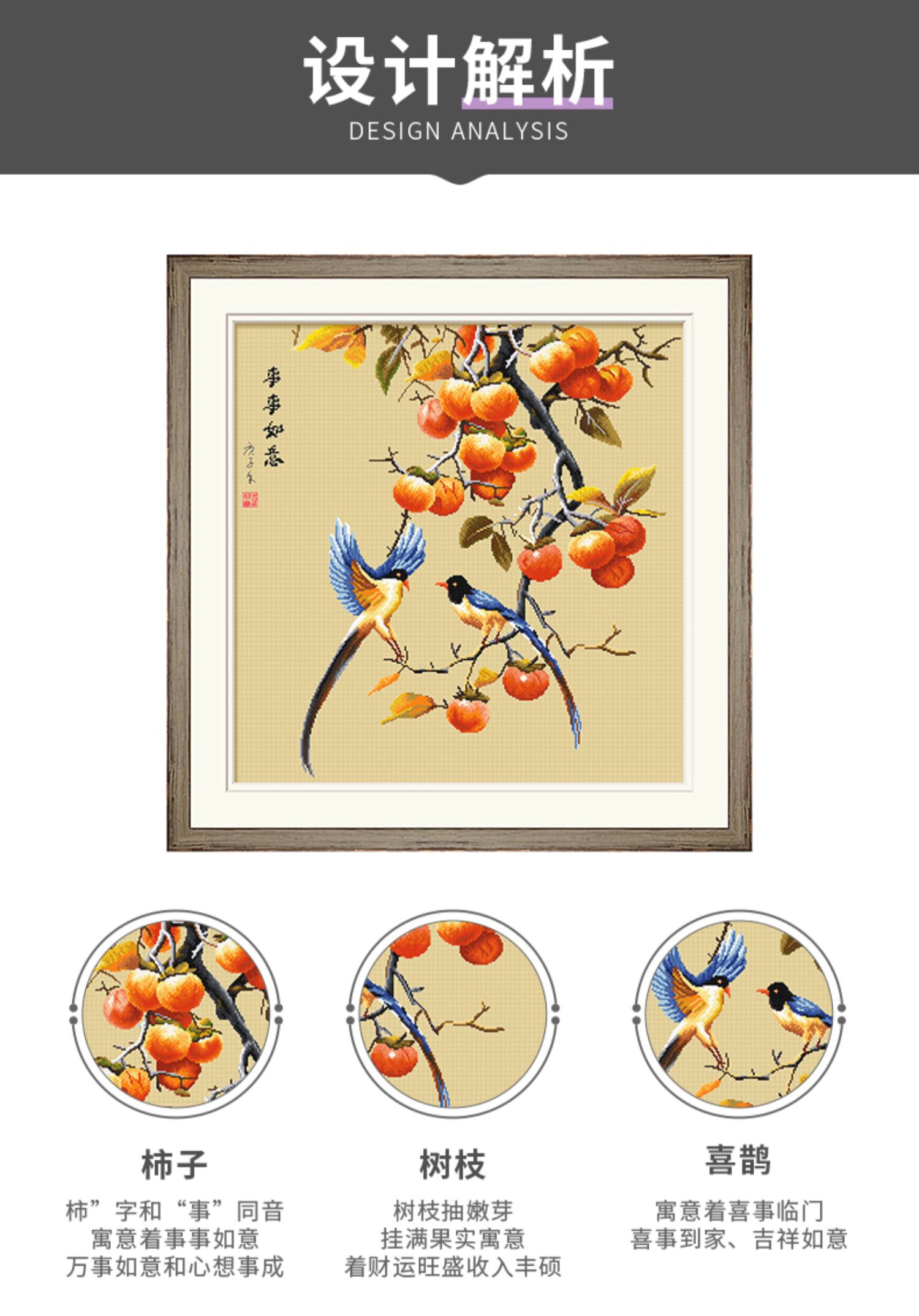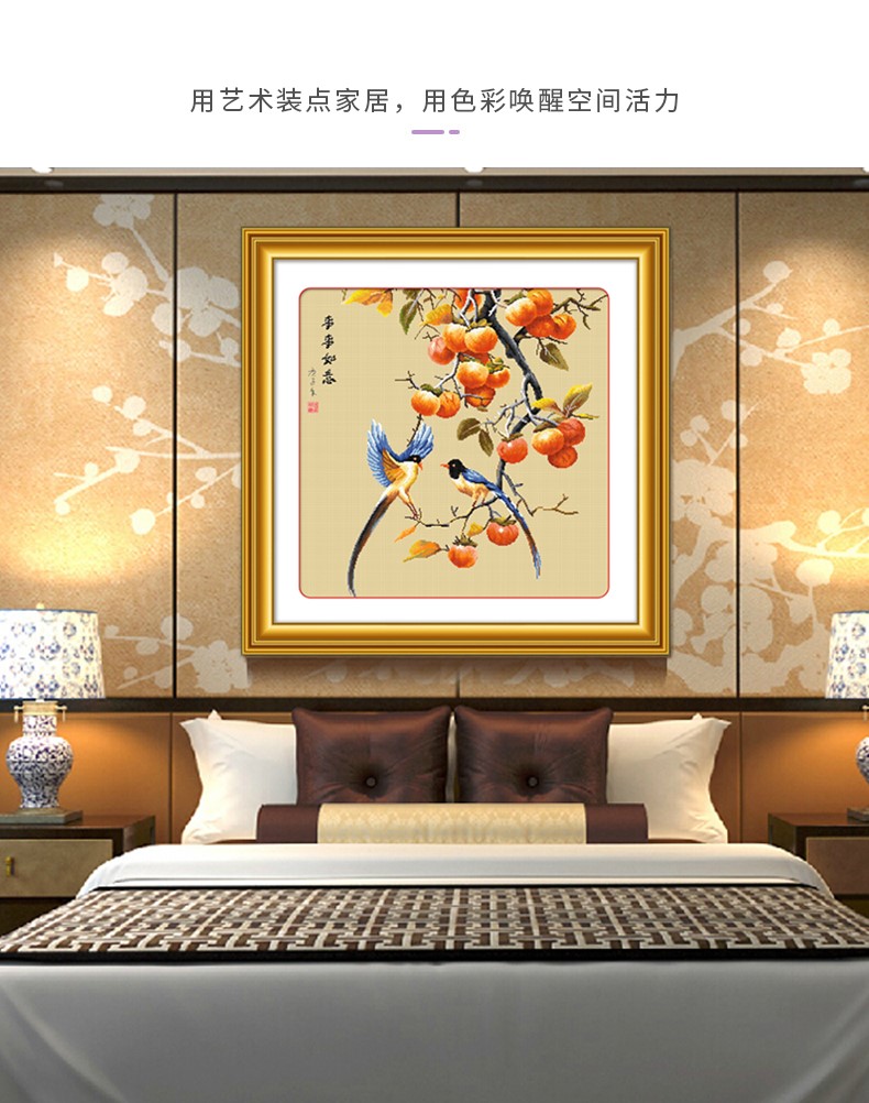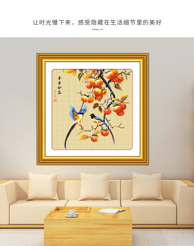 KS十字繡2023年新款餐廳客廳臥室掛畫手工繡自己繡事事如意柿子